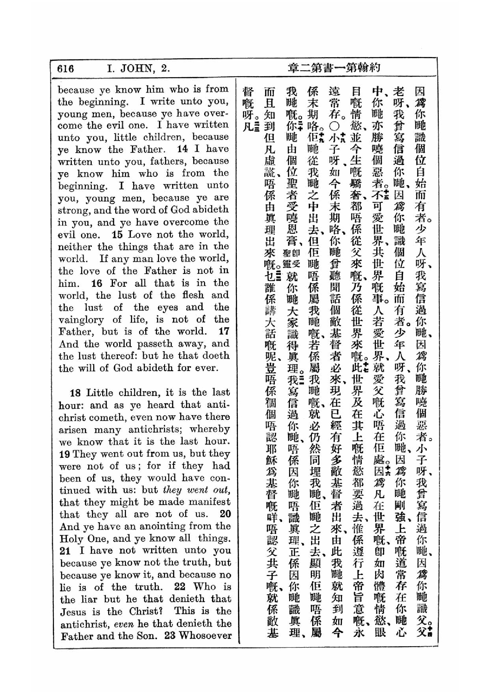 1927年新約全書(中英對照) 約翰一書 2 章 13 節到 2 章 22 節