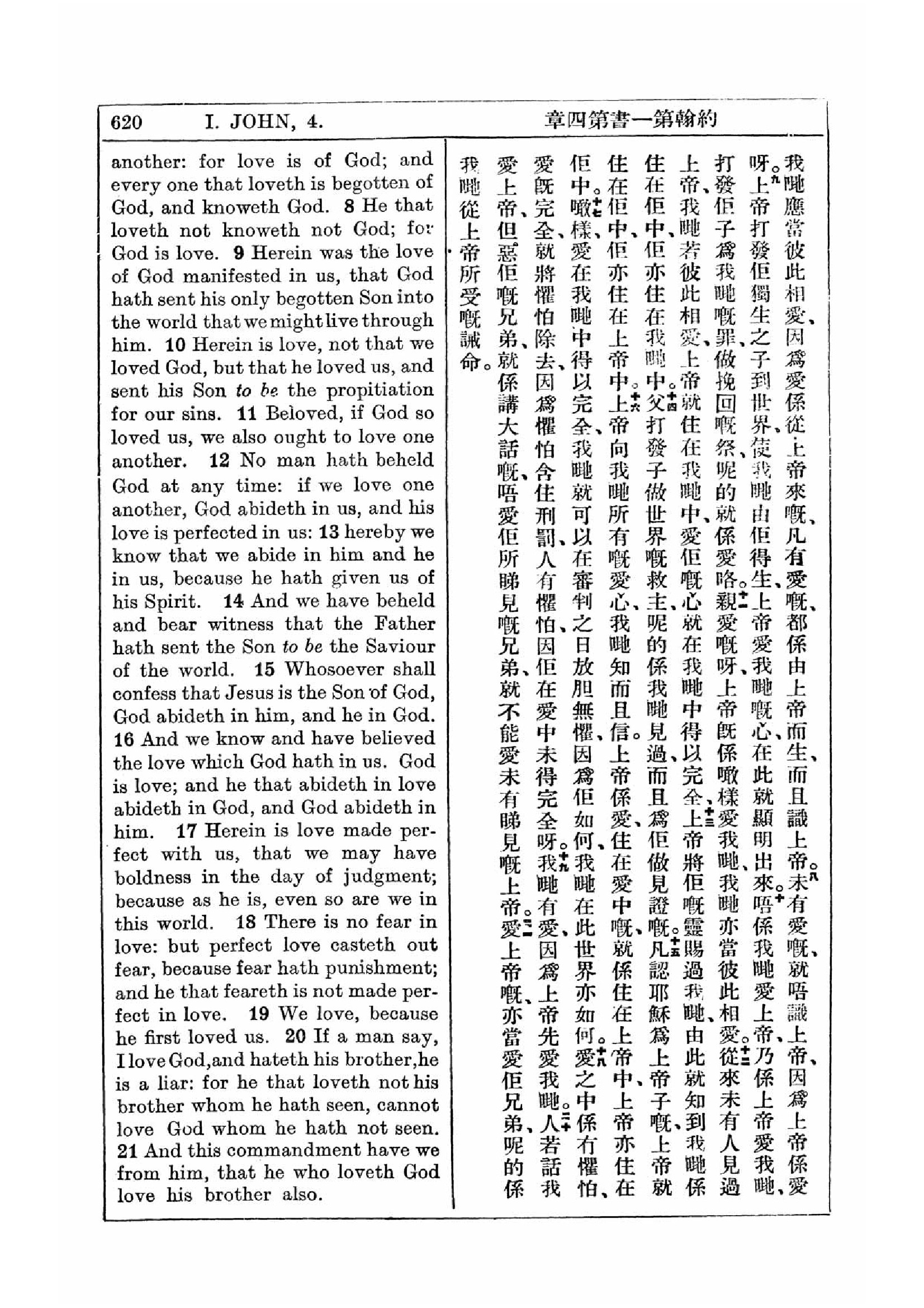 1927年新約全書(中英對照) 約翰一書 4 章 7 節到 4 章 21 節