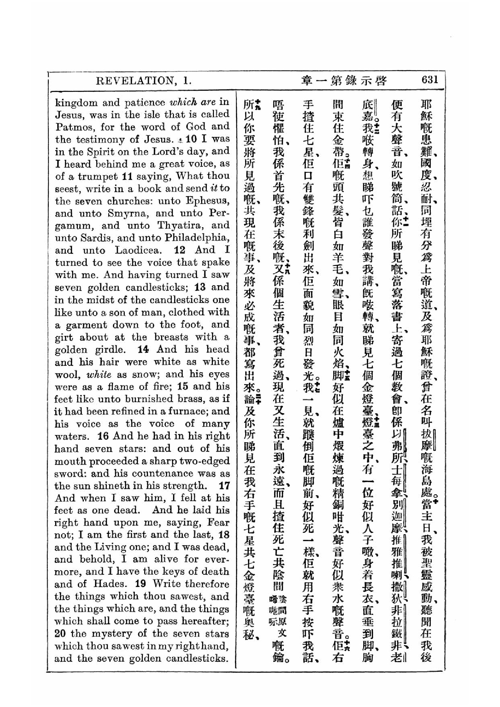 1927年新約全書(中英對照) 啟示錄 1 章 10 節到 1 章 20 節
