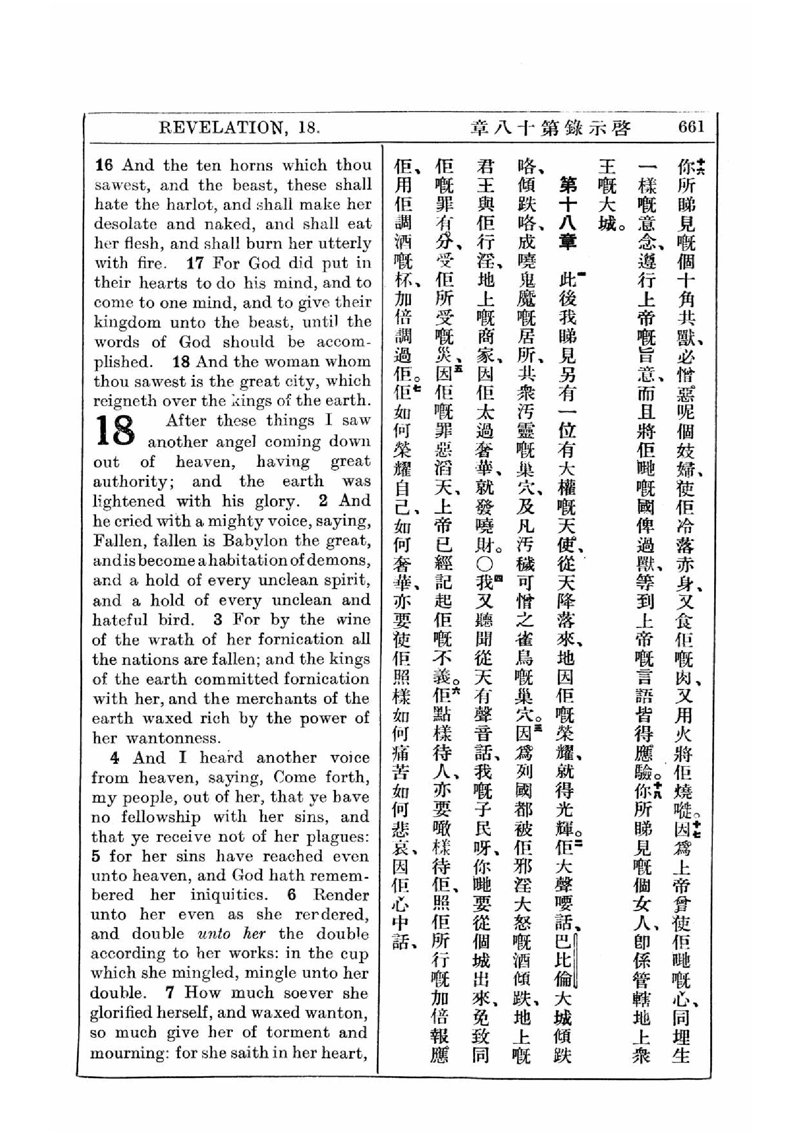 1927年新約全書(中英對照) 啟示錄 17 章 16 節到 18 章 7 節