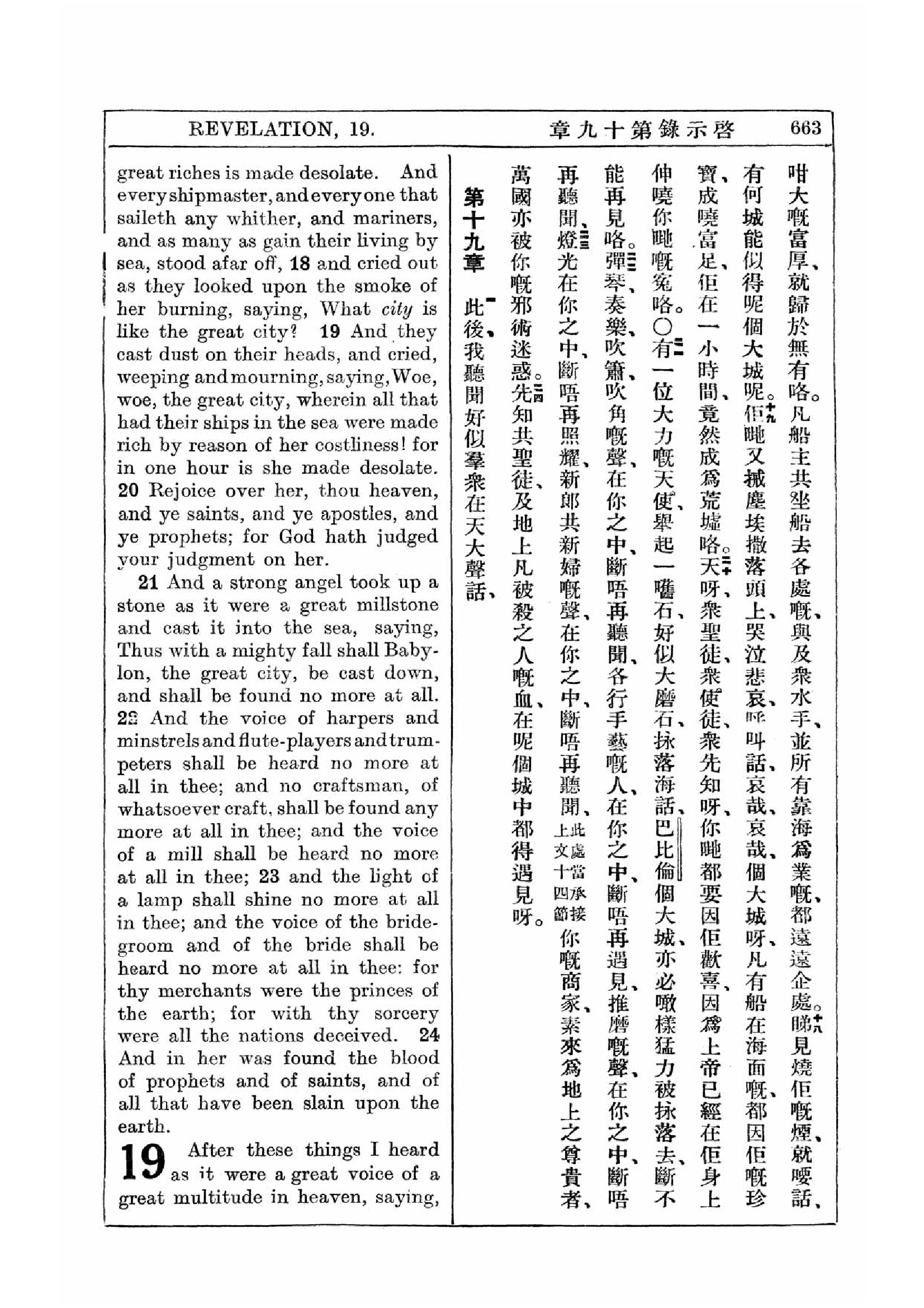 1927年新約全書(中英對照) 啟示錄 18 章 17 節到 19 章 1 節