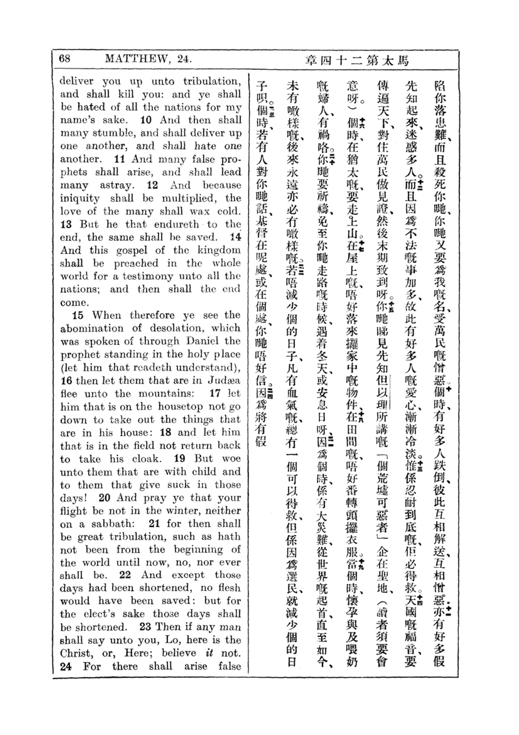 1927年新約全書(中英對照) 馬太福音 24 章 9 節到 24 章 23 節