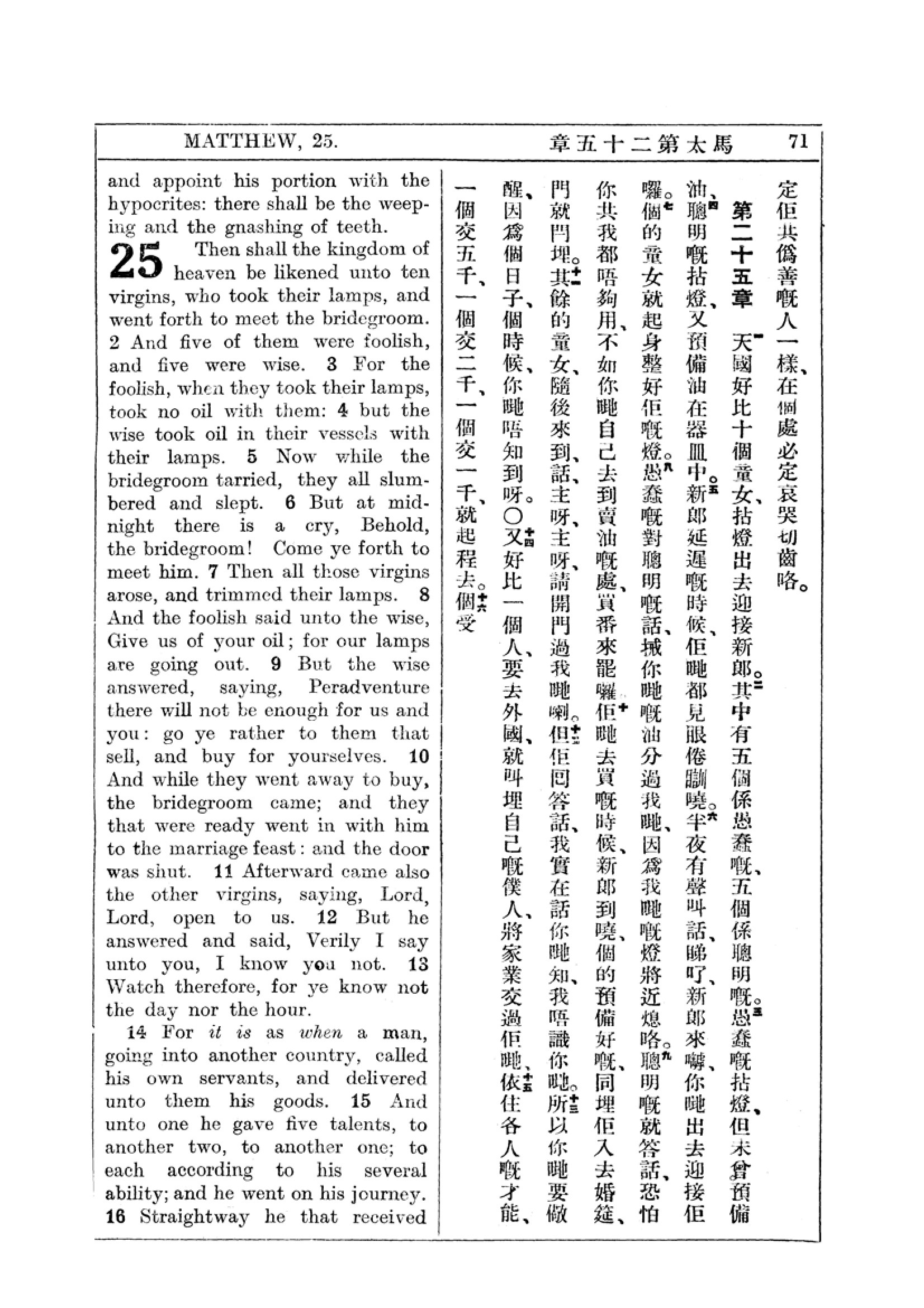 1927年新約全書(中英對照) 馬太福音 25 章 1 節到 25 章 15 節