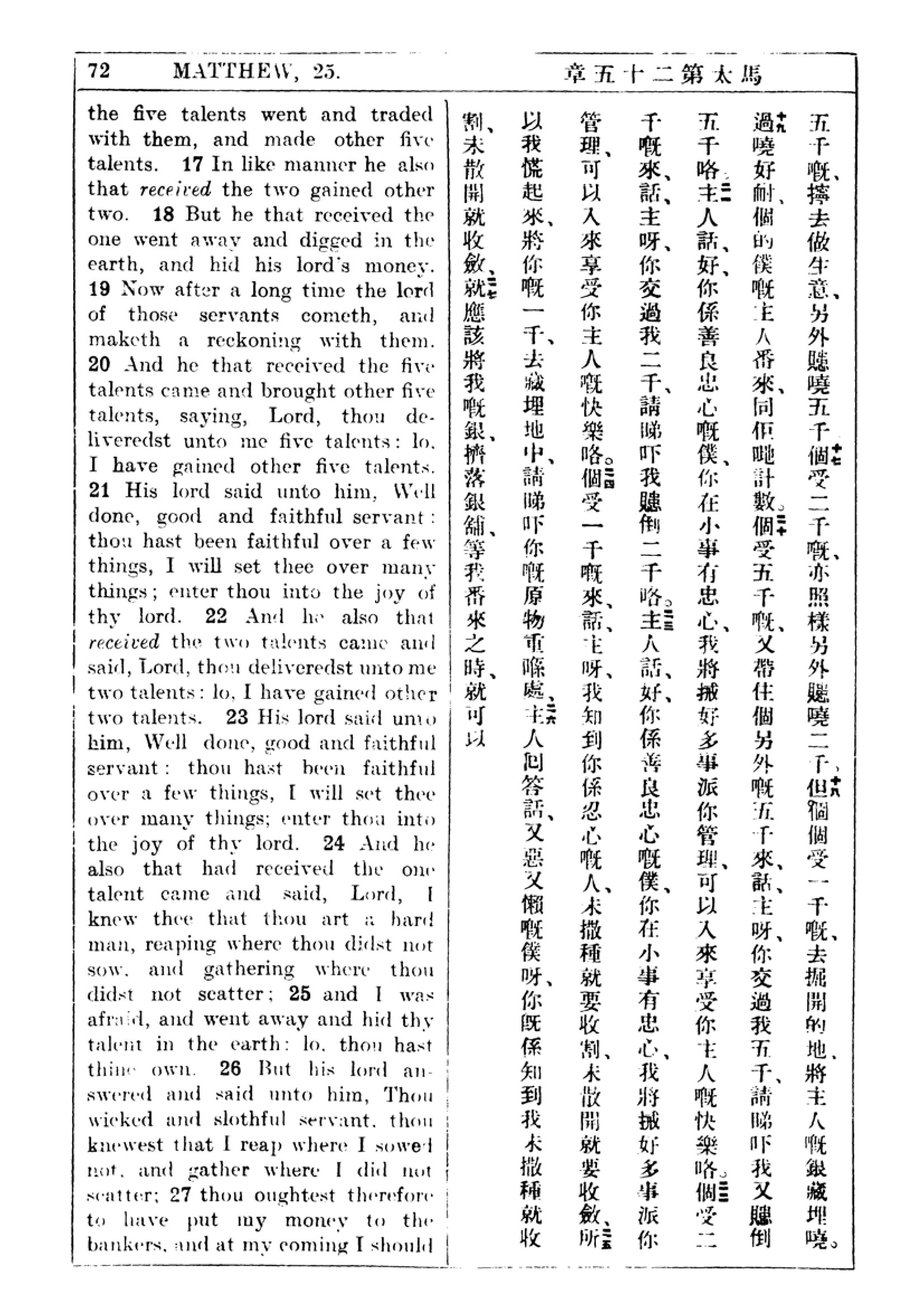1927年新約全書(中英對照) 馬太福音 25 章 16 節到 25 章 27 節