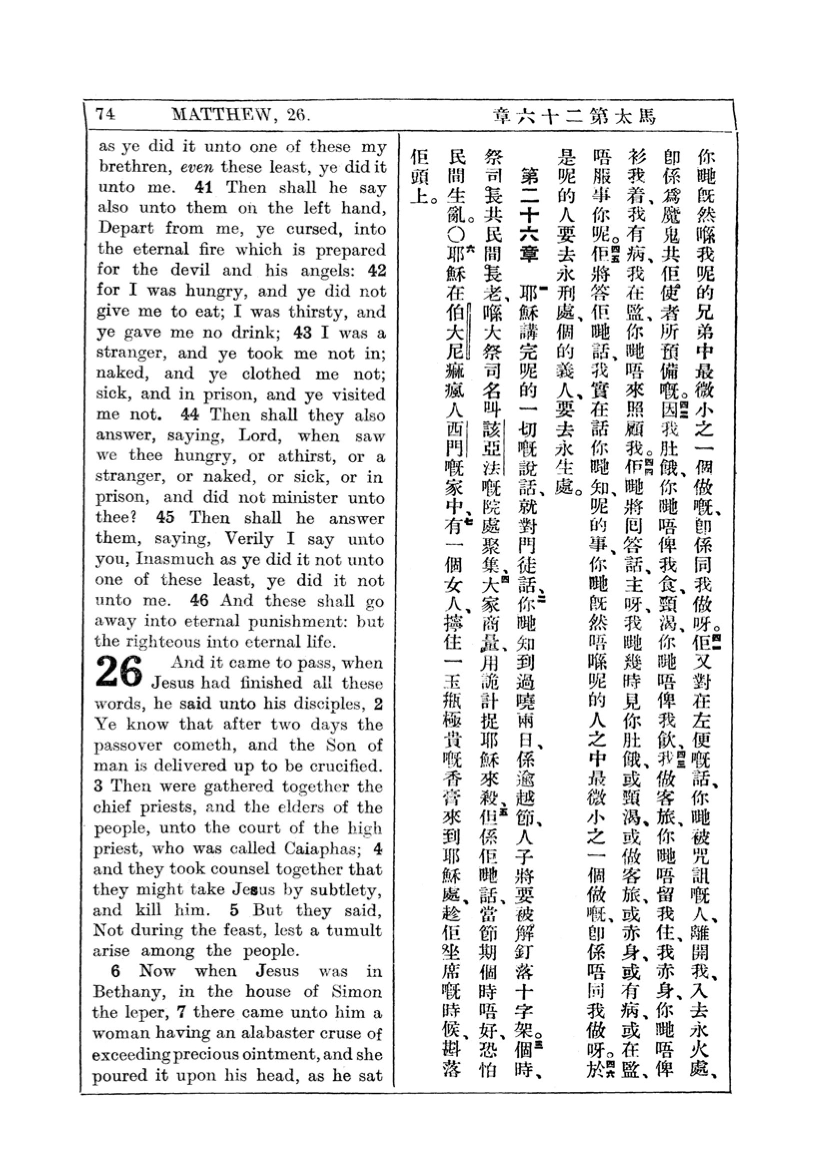 1927年新約全書(中英對照) 馬太福音 25 章 41 節到 26 章 7 節