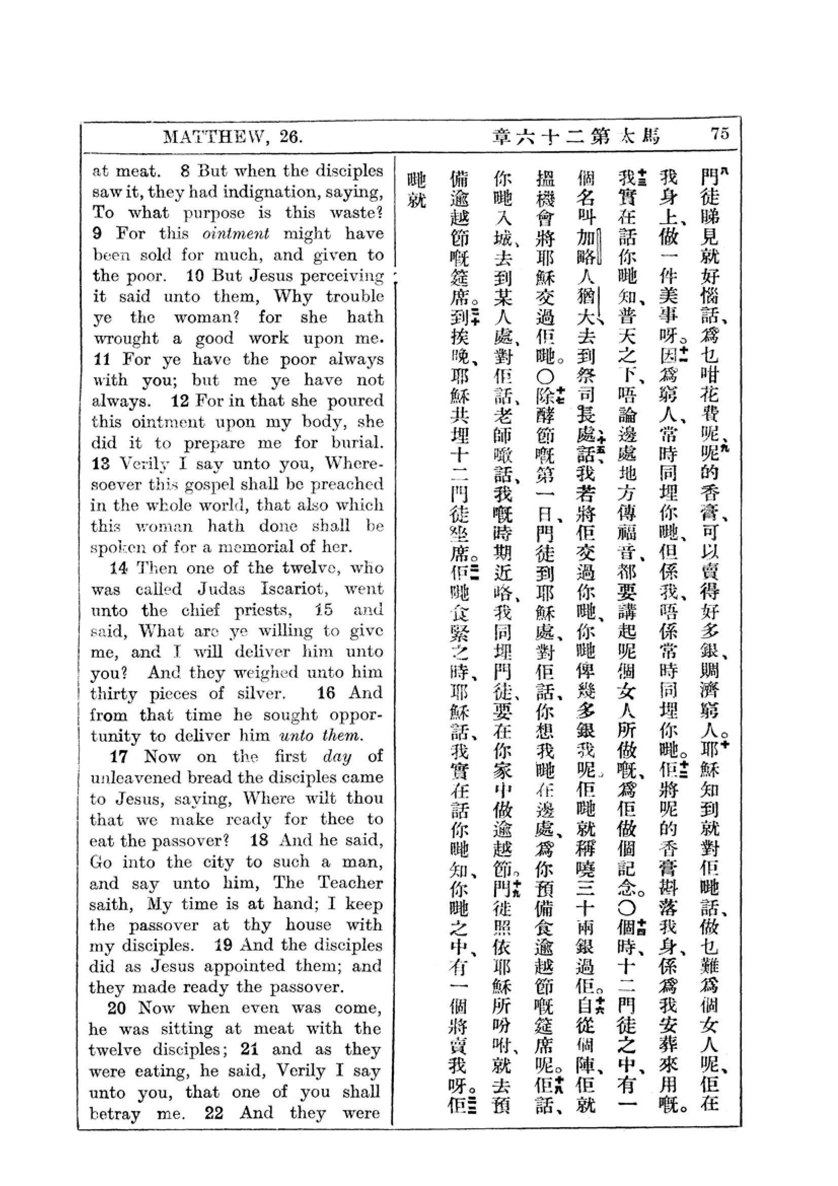 1927年新約全書(中英對照) 馬太福音 26 章 8 節到 26 章 22 節