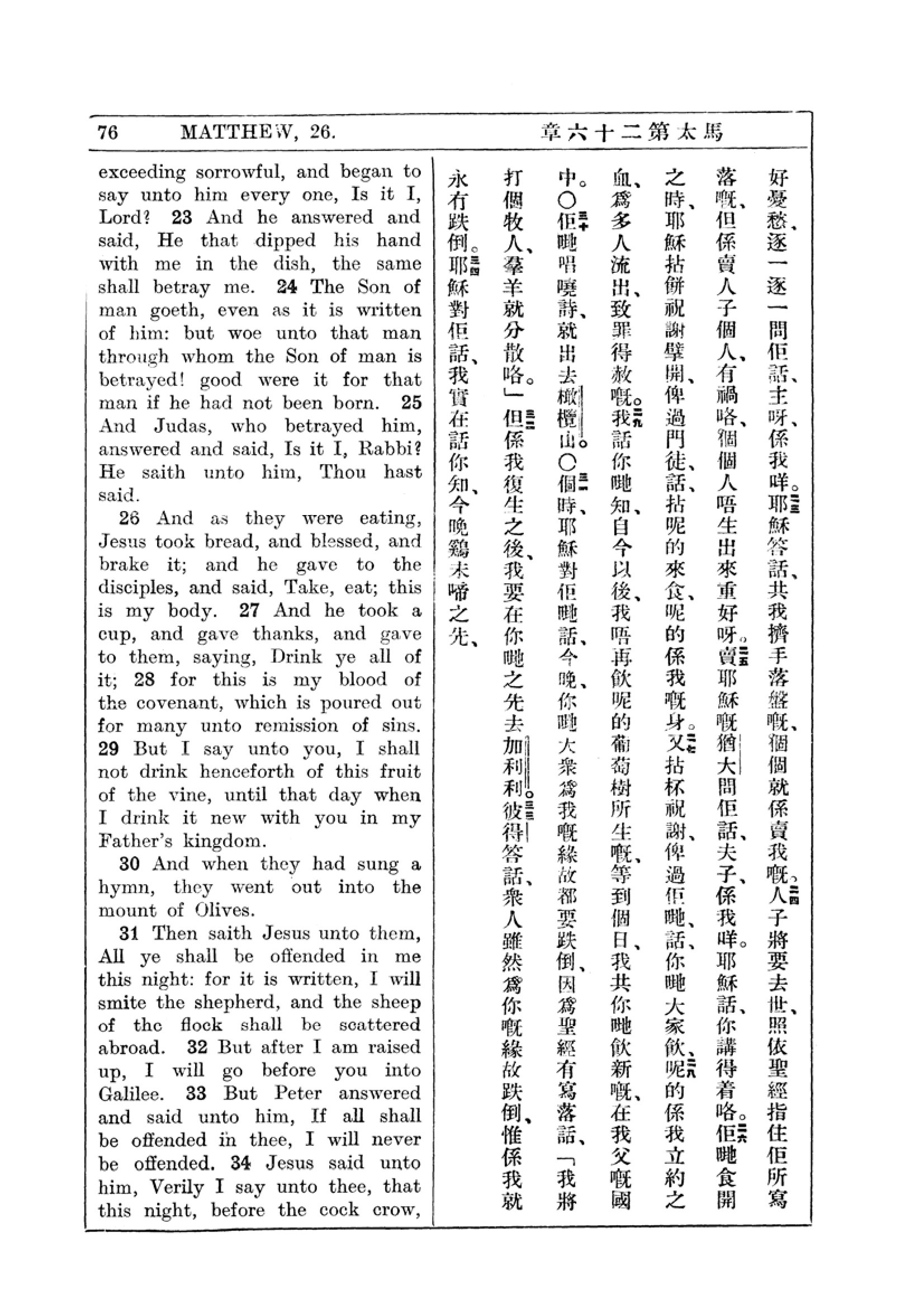 1927年新約全書(中英對照) 馬太福音 26 章 23 節到 26 章 34 節