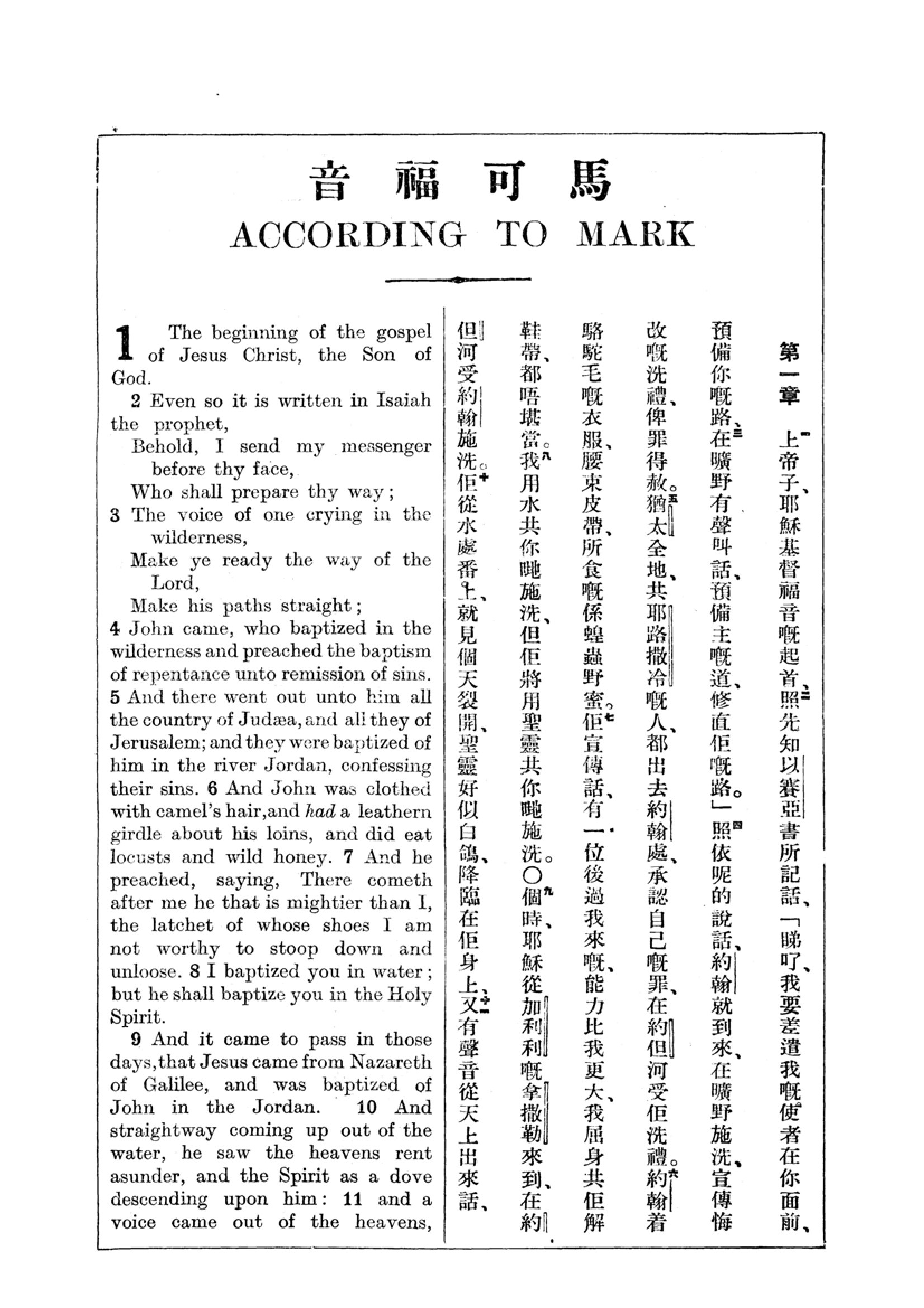 1927年新約全書(中英對照) 馬可福音 1 章 1 節到 1 章 11 節