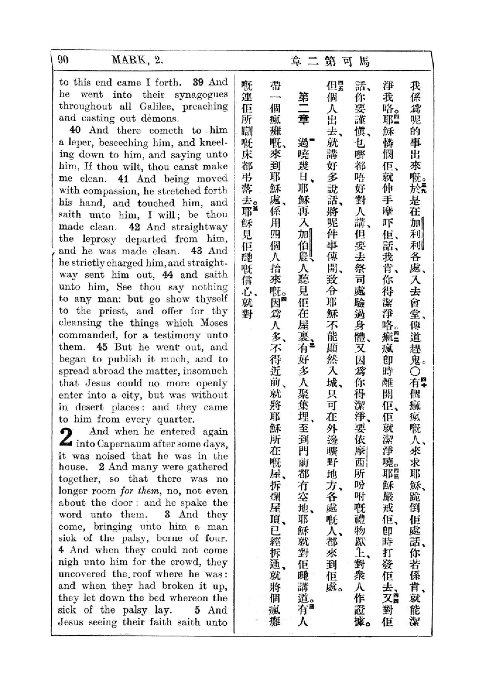 1927年新約全書(中英對照) 馬可福音 1 章 39 節到 2 章 5 節