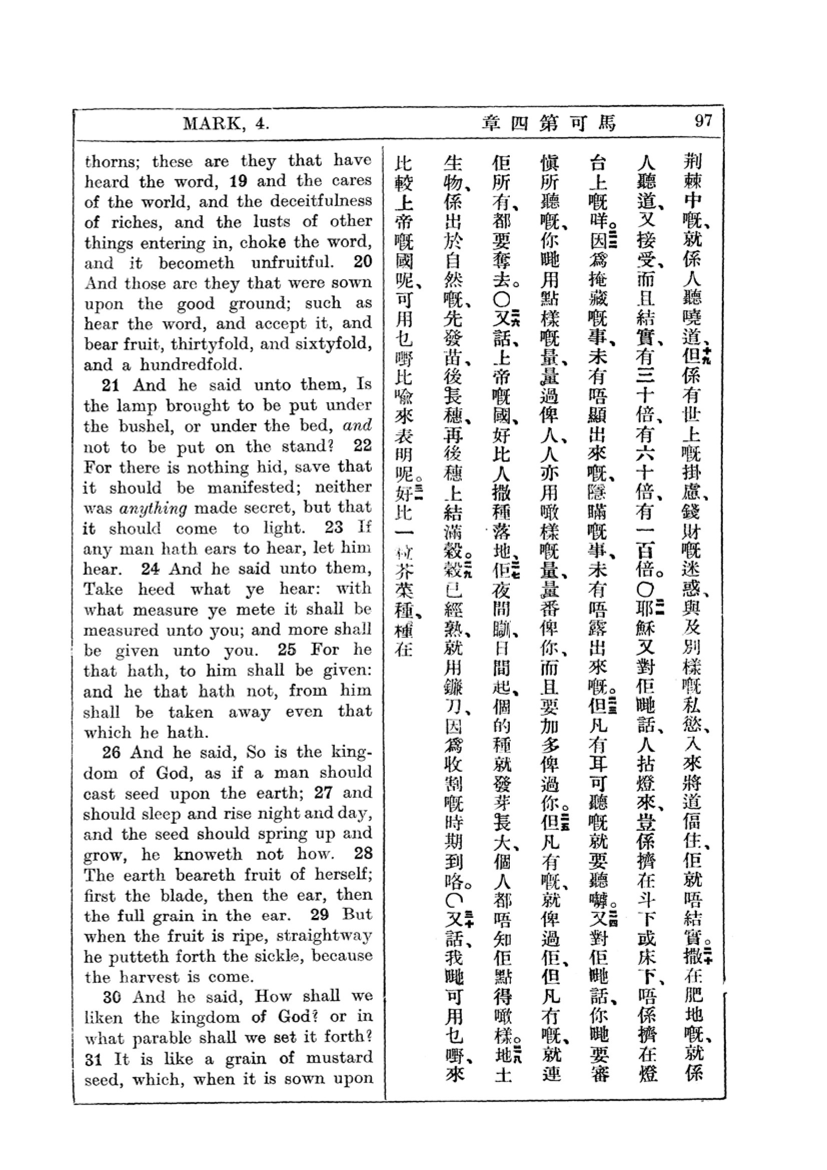 1927年新約全書(中英對照) 馬可福音 4 章 19 節到 4 章 31 節