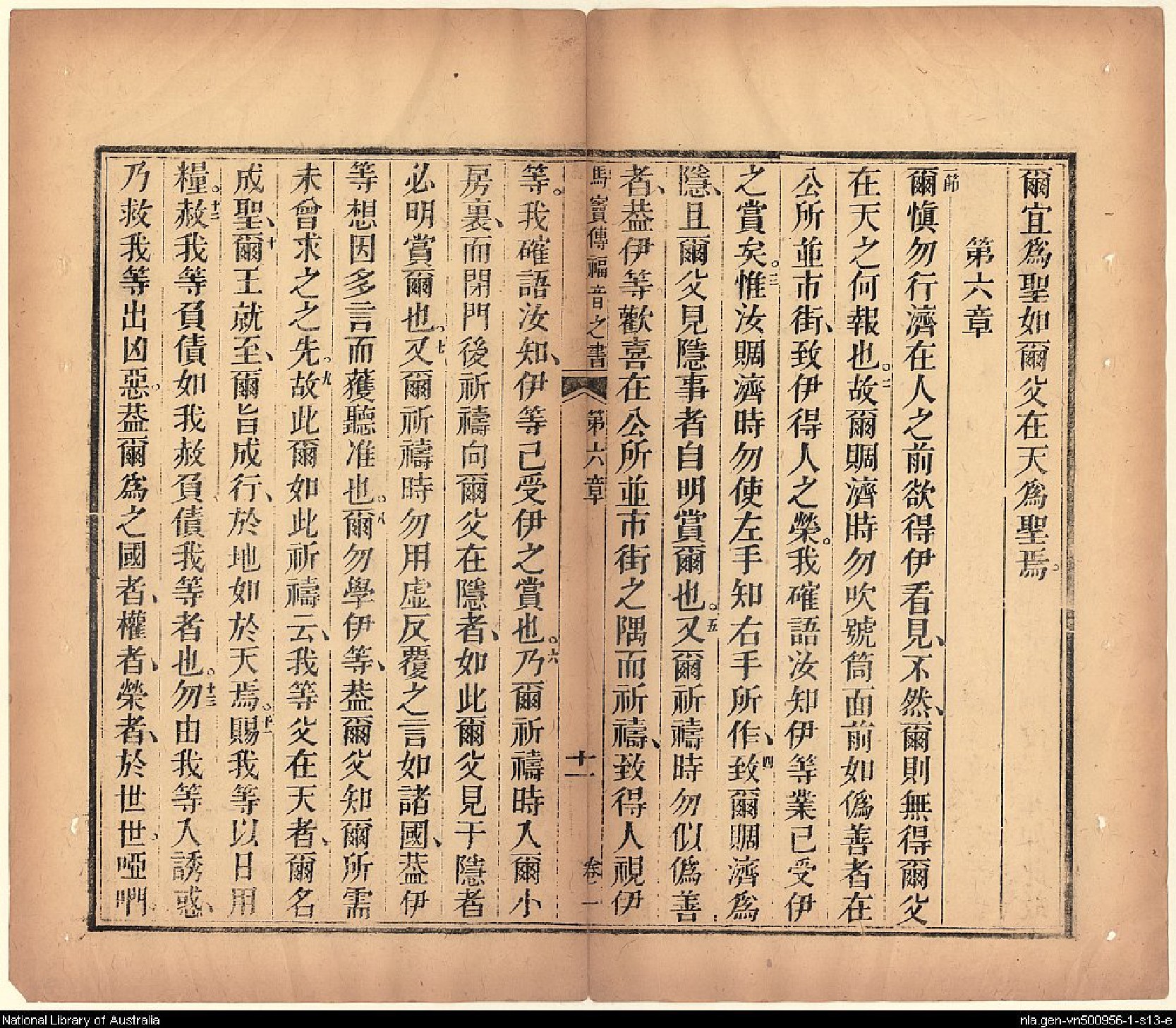1826年我等救世主耶穌新遺詔書(新約全書) 馬太福音 5 章 48 節到 6 章 13 節