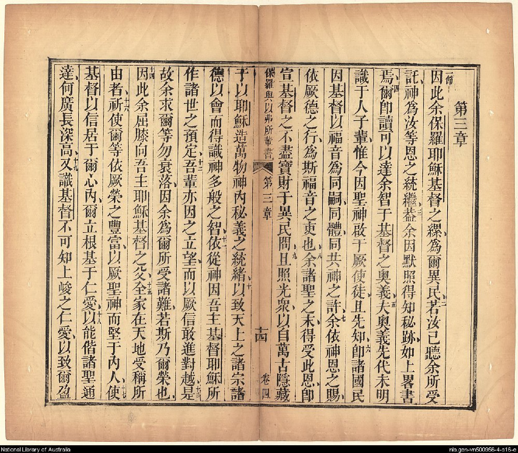 1826年我等救世主耶穌新遺詔書(新約全書) 以弗所書 3 章 1 節到 3 章 19 節