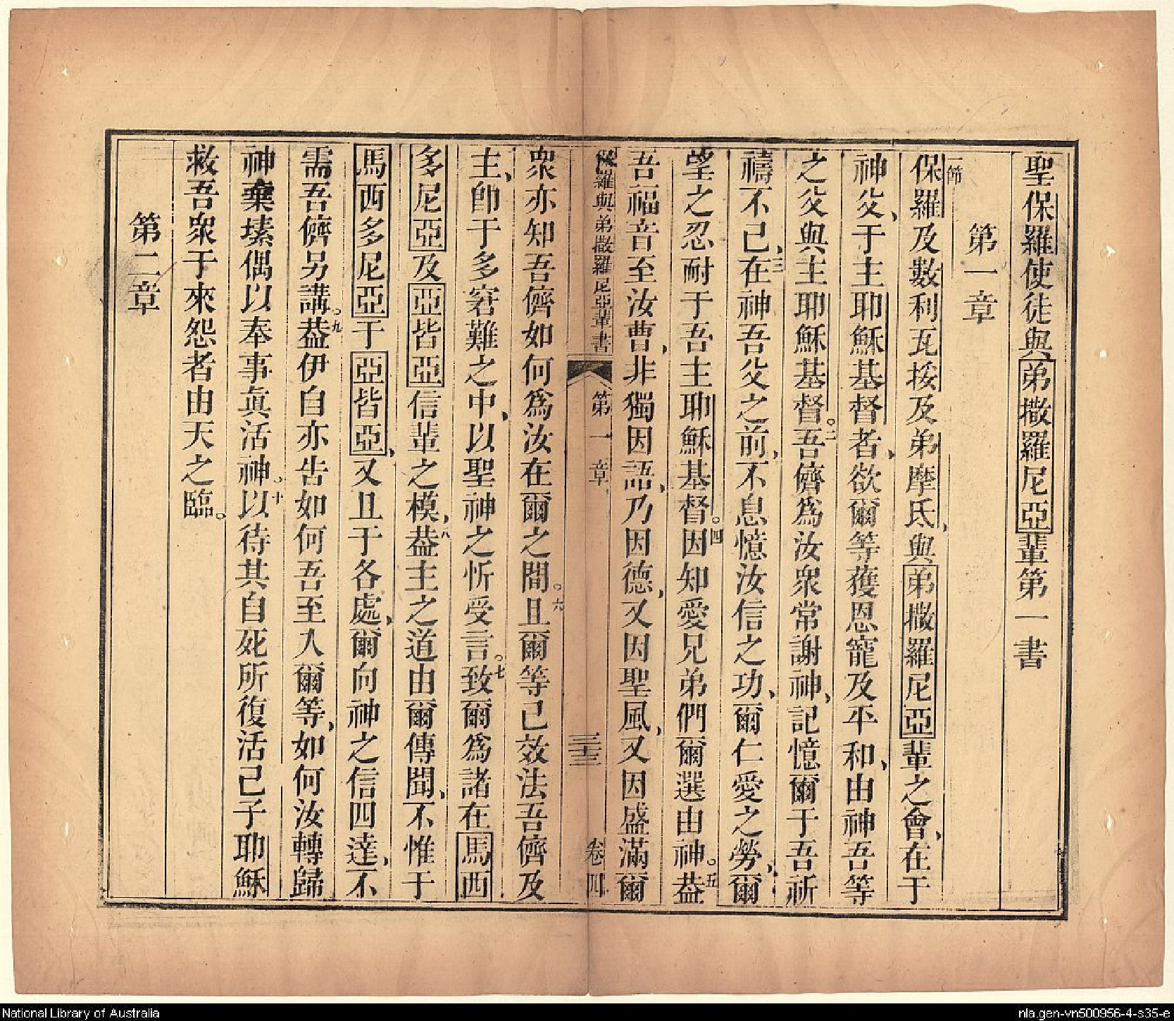 1826年我等救世主耶穌新遺詔書(新約全書) 帖撒羅尼迦前書 1 章 1 節到 2 章 0 節