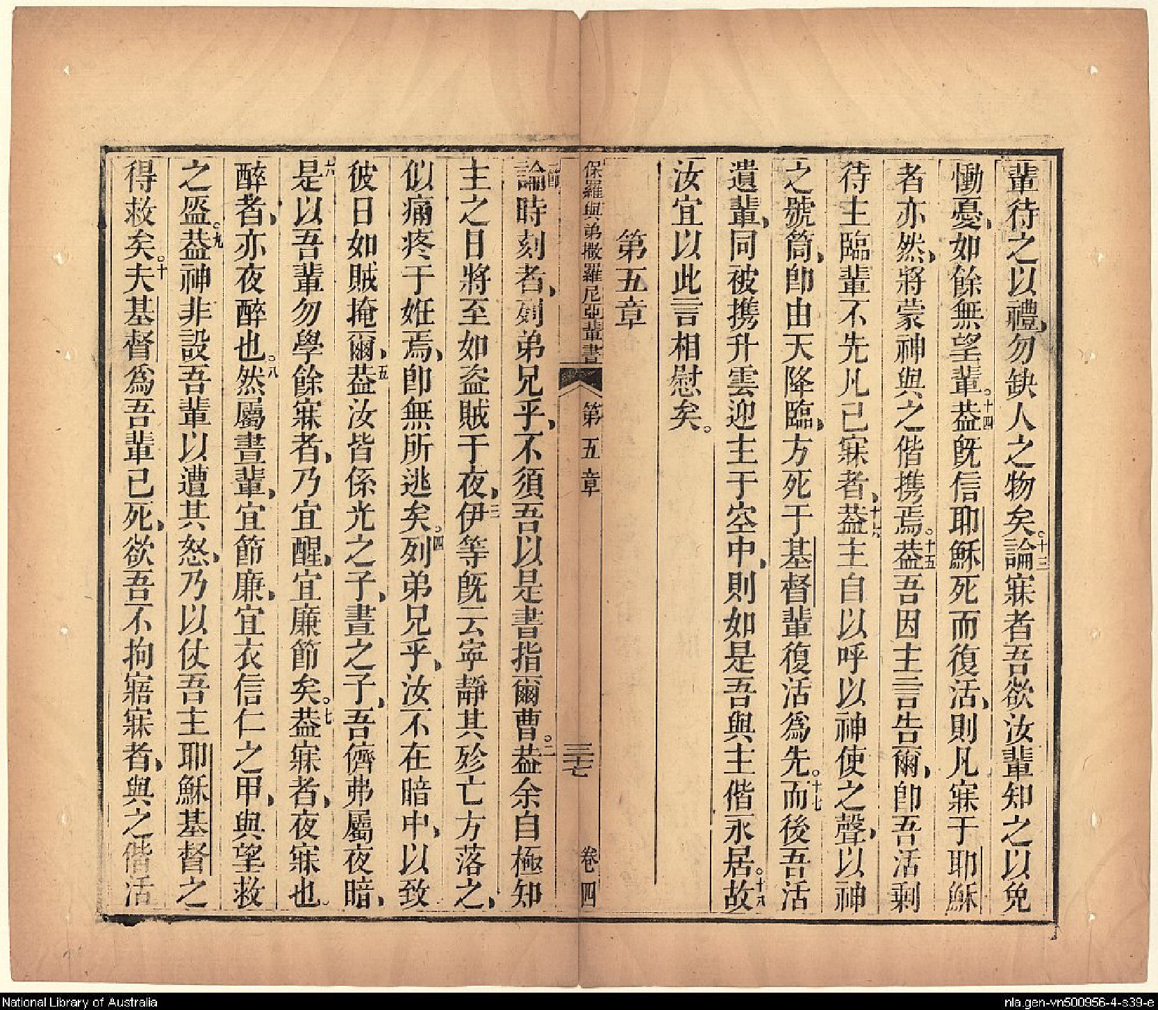 1826年我等救世主耶穌新遺詔書(新約全書) 帖撒羅尼迦前書 4 章 12 節到 5 章 10 節