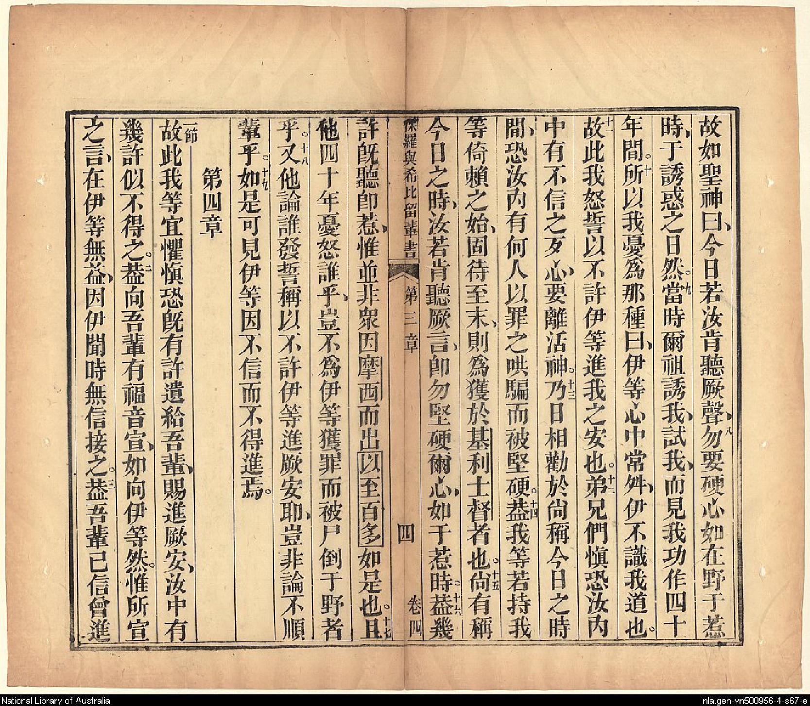 1826年我等救世主耶穌新遺詔書(新約全書) 希伯來書 3 章 7 節到 4 章 3 節