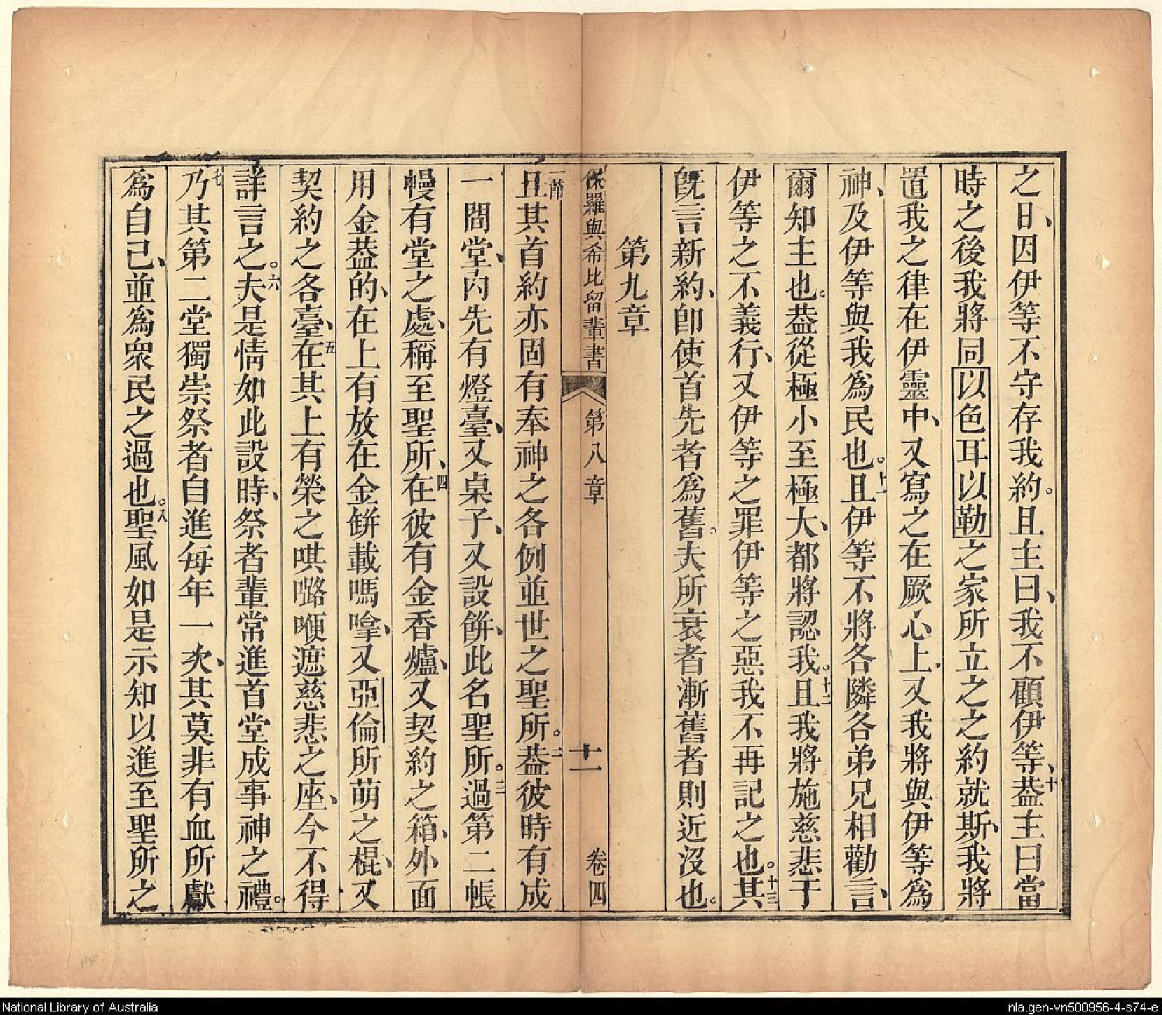 1826年我等救世主耶穌新遺詔書(新約全書) 希伯來書 8 章 9 節到 9 章 8 節