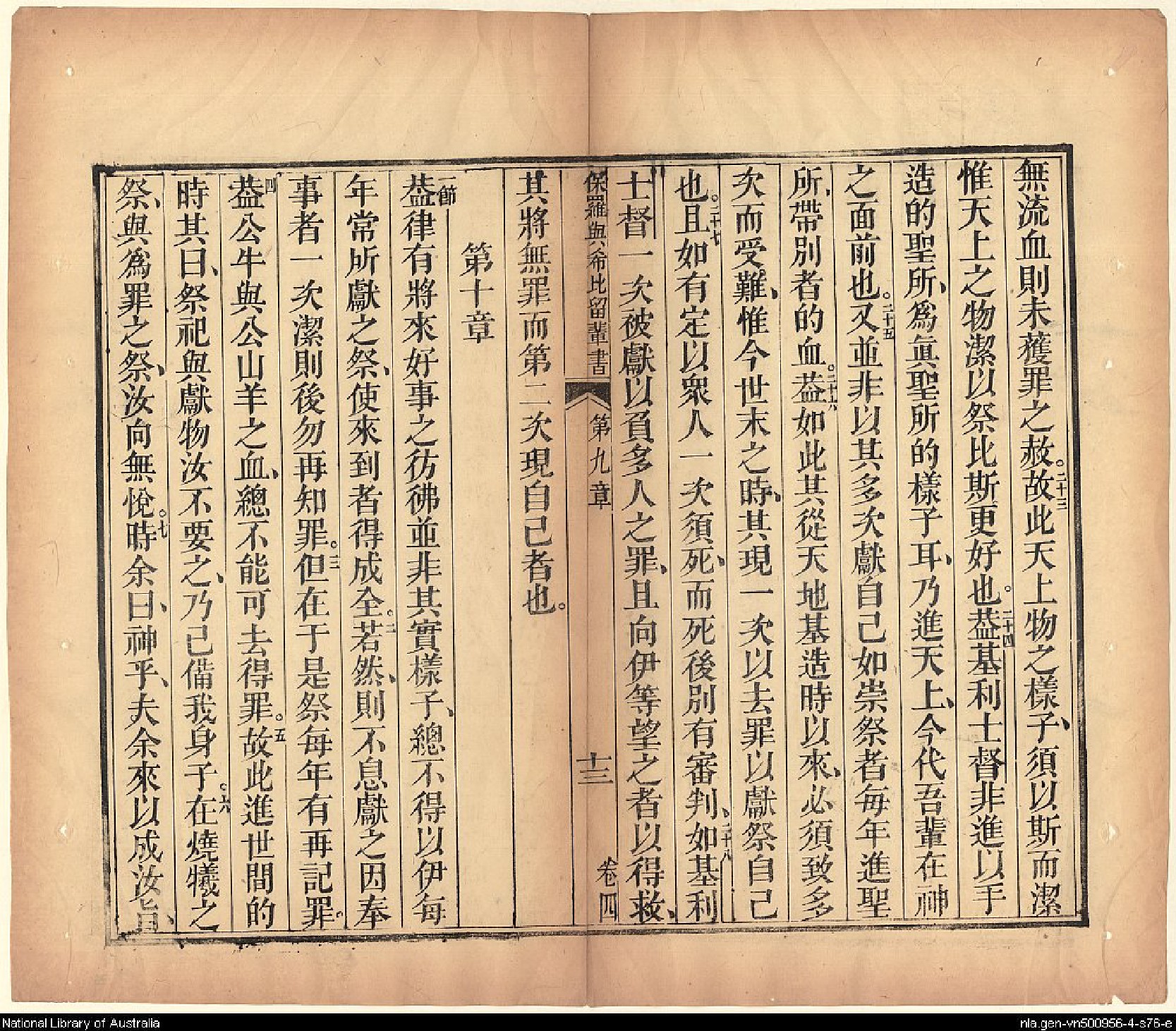 1826年我等救世主耶穌新遺詔書(新約全書) 希伯來書 9 章 22 節到 10 章 7 節