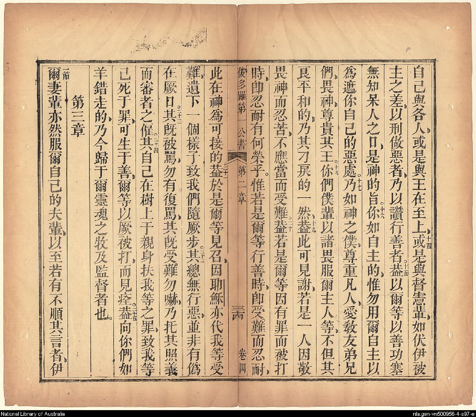 1826年我等救世主耶穌新遺詔書(新約全書) 彼得前書 2 章 13 節到 3 章 1 節