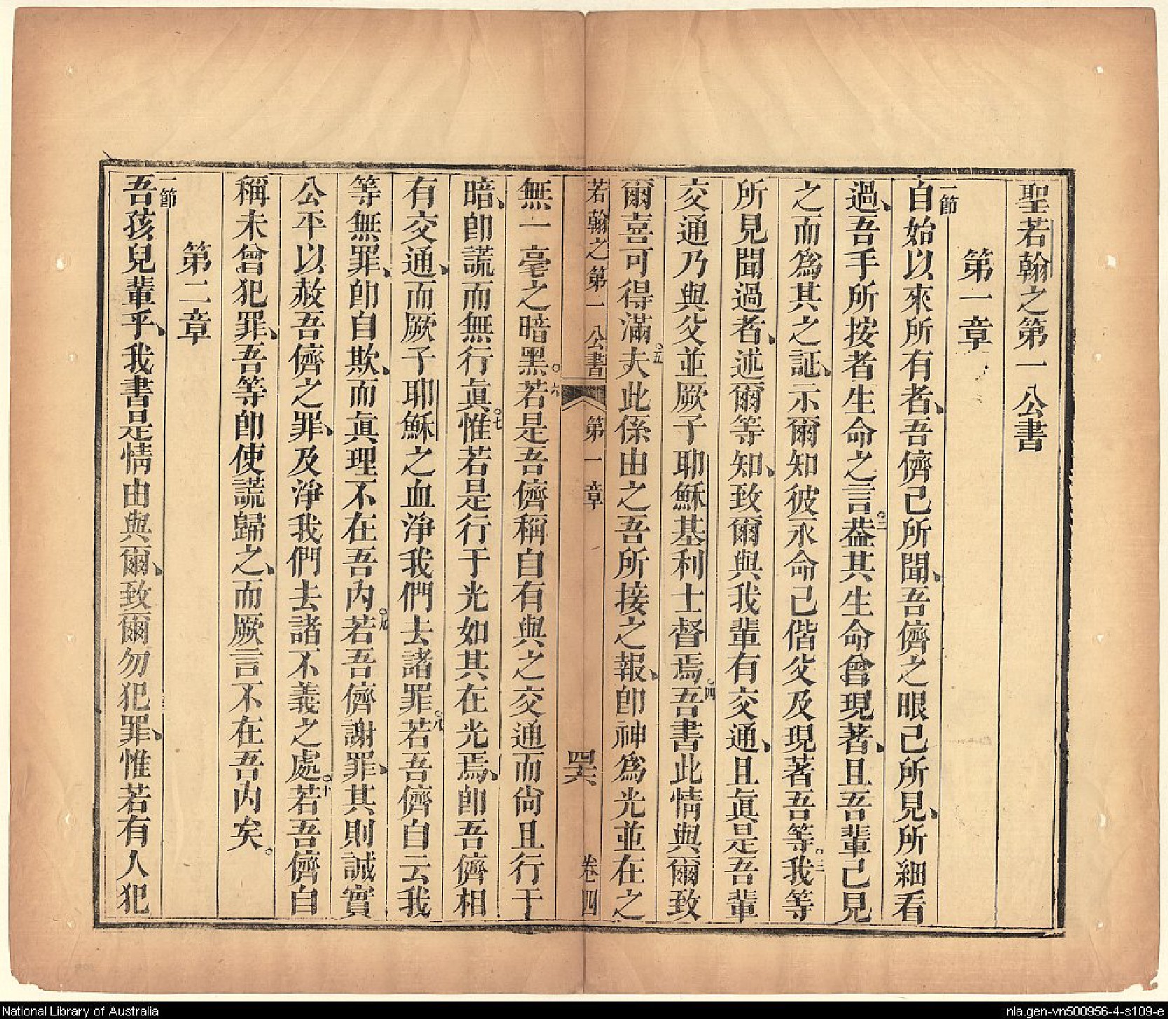 1826年我等救世主耶穌新遺詔書(新約全書) 約翰一書 1 章 1 節到 2 章 1 節