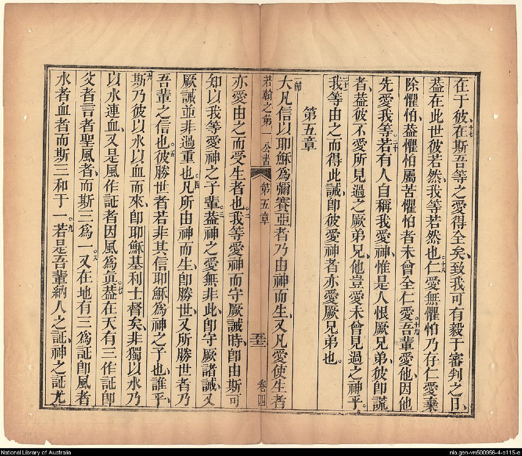 1826年我等救世主耶穌新遺詔書(新約全書) 約翰一書 4 章 16 節到 5 章 9 節