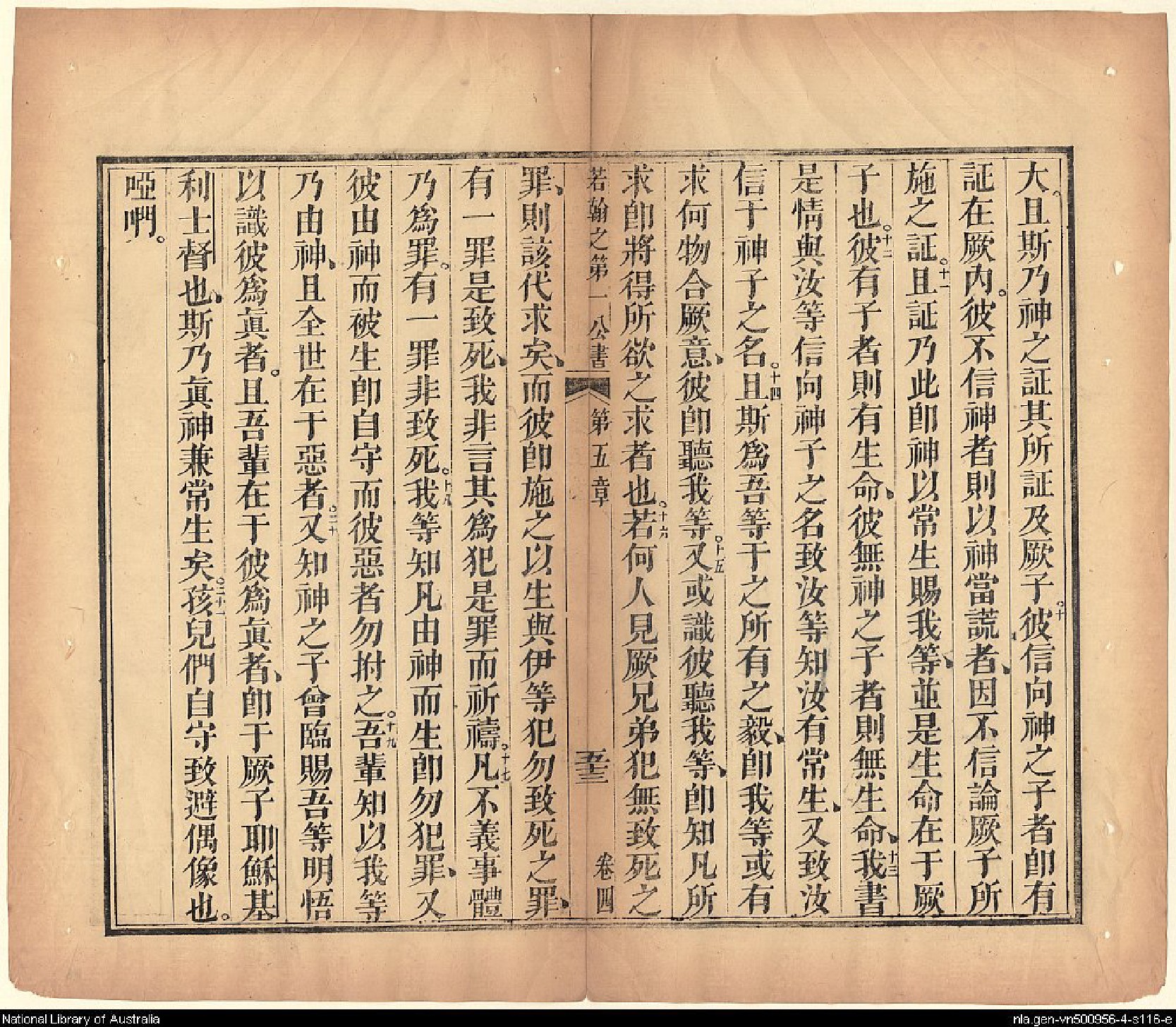1826年我等救世主耶穌新遺詔書(新約全書) 約翰一書 5 章 9 節到 5 章 21 節