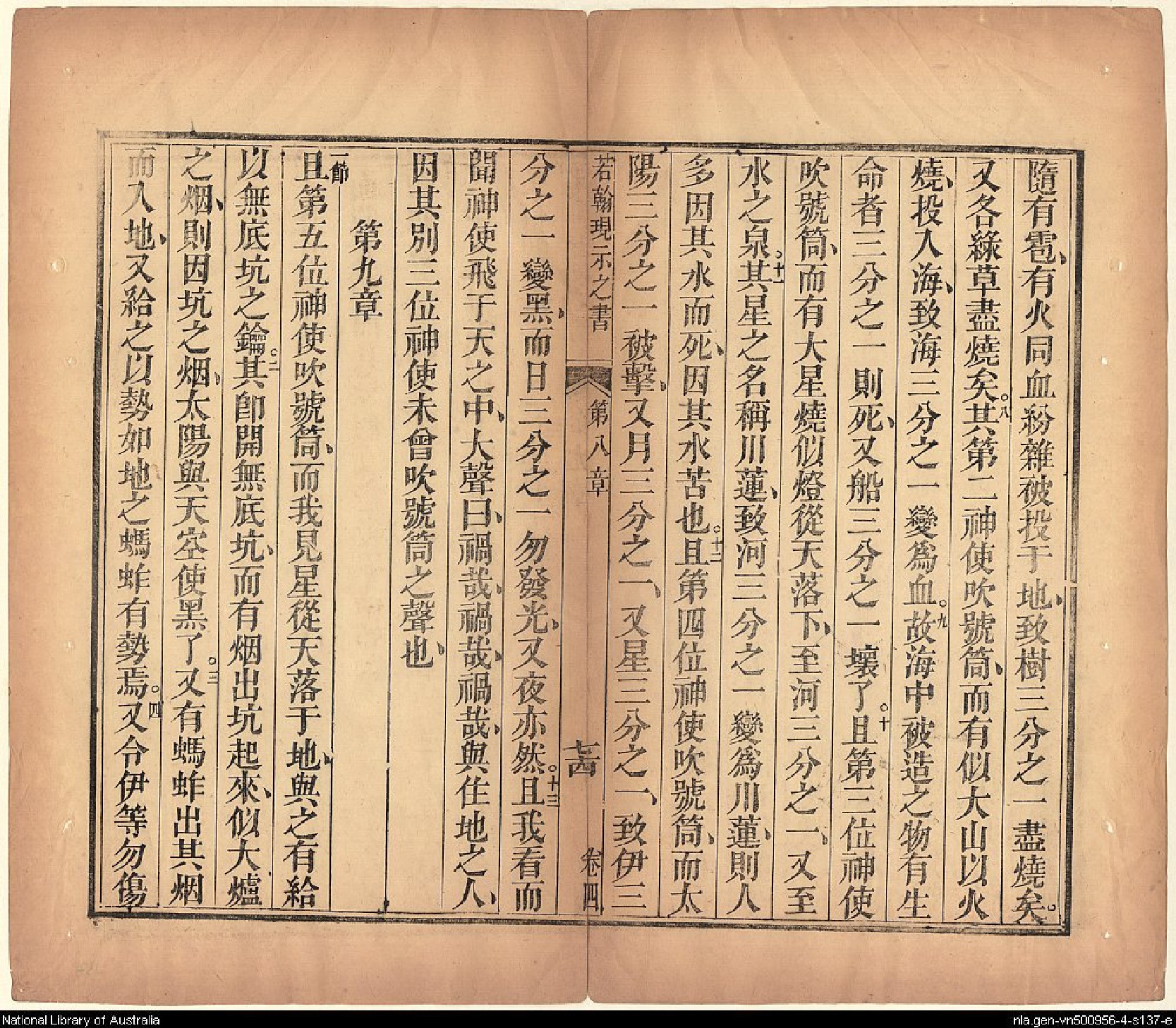 1826年我等救世主耶穌新遺詔書(新約全書) 啟示錄 8 章 7 節到 9 章 4 節