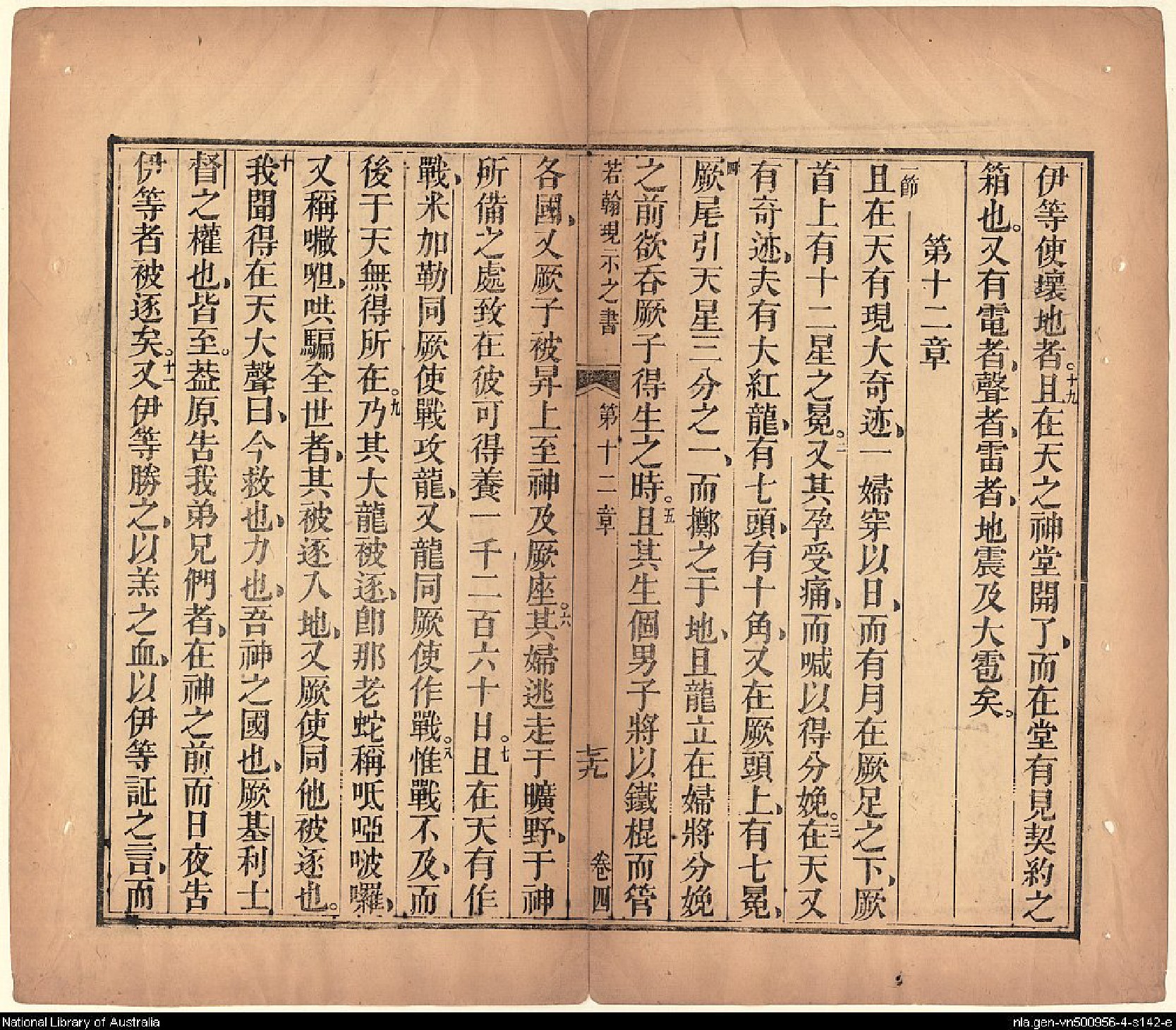 1826年我等救世主耶穌新遺詔書(新約全書) 啟示錄 11 章 18 節到 12 章 11 節