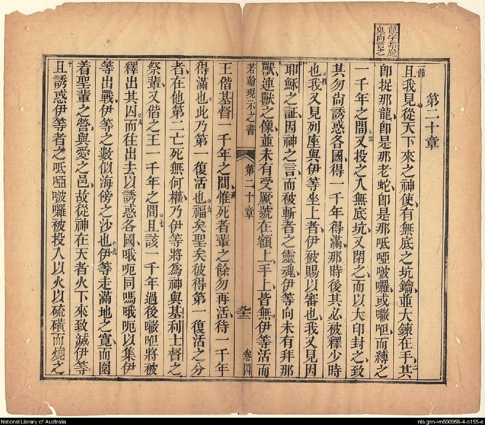 1826年我等救世主耶穌新遺詔書(新約全書) 啟示錄 20 章 1 節到 20 章 10 節