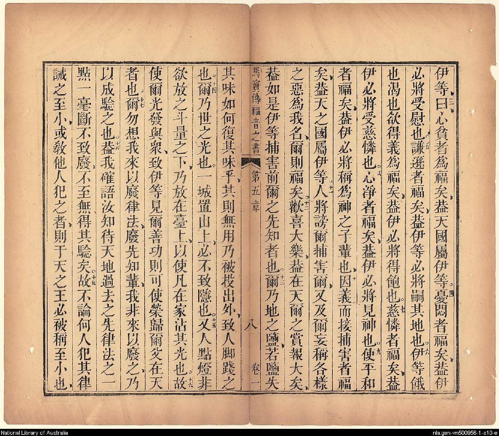 1826年我等救世主耶穌新遺詔書(新約全書) 馬太福音 5 章 2 節到 5 章 19 節