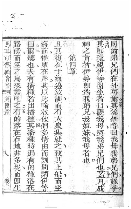 1823年神天新遺詔書-救世我主耶穌新遺詔書 馬可福音 3 章 32 節到 4 章 5 節