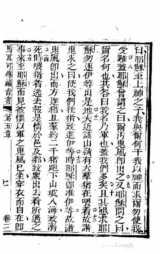 1823年神天新遺詔書-救世我主耶穌新遺詔書 馬可福音 5 章 7 節到 5 章 15 節