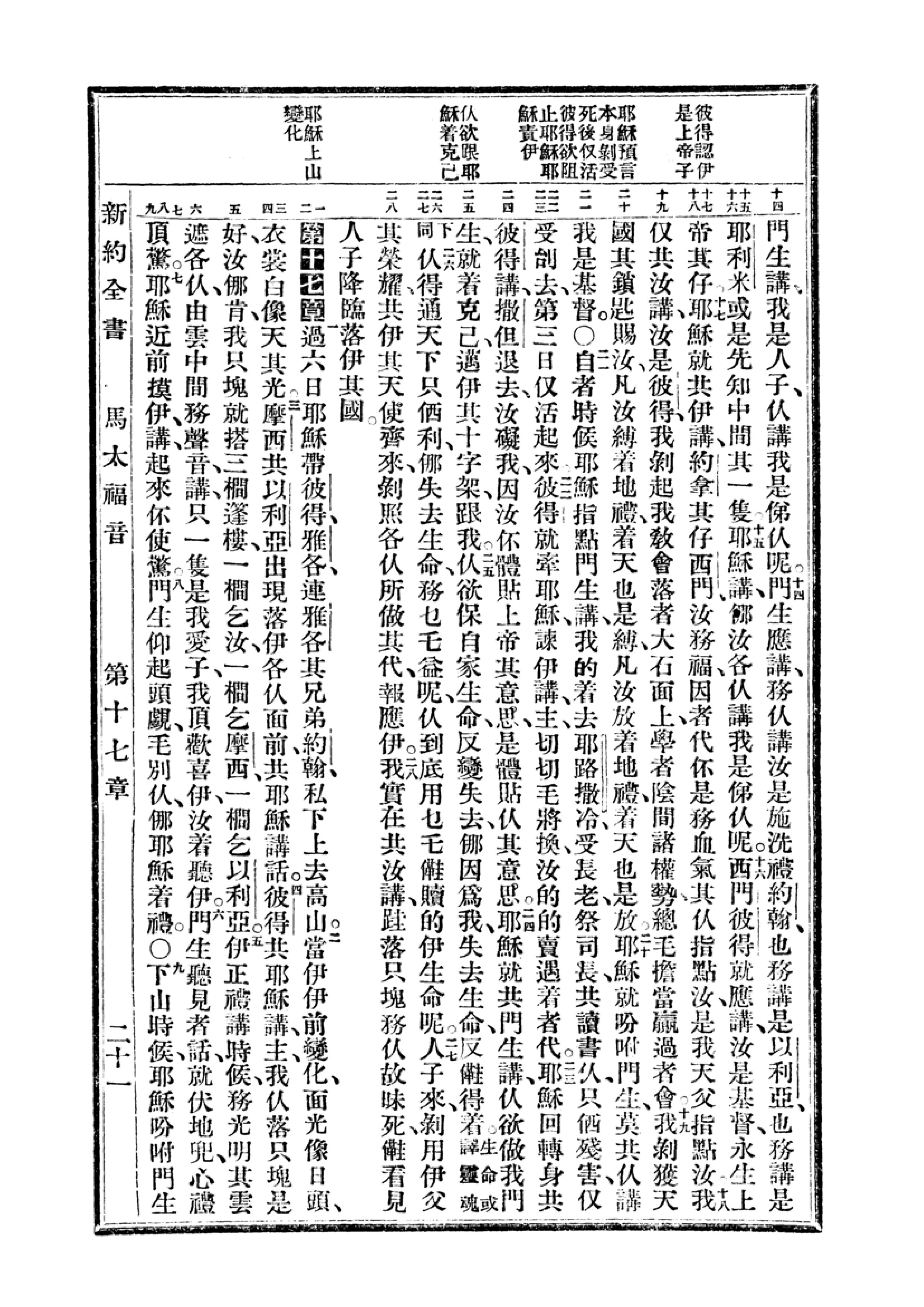 1940年福州土白《新舊約全書》 馬太福音 16 章 14 節到 17 章 9 節