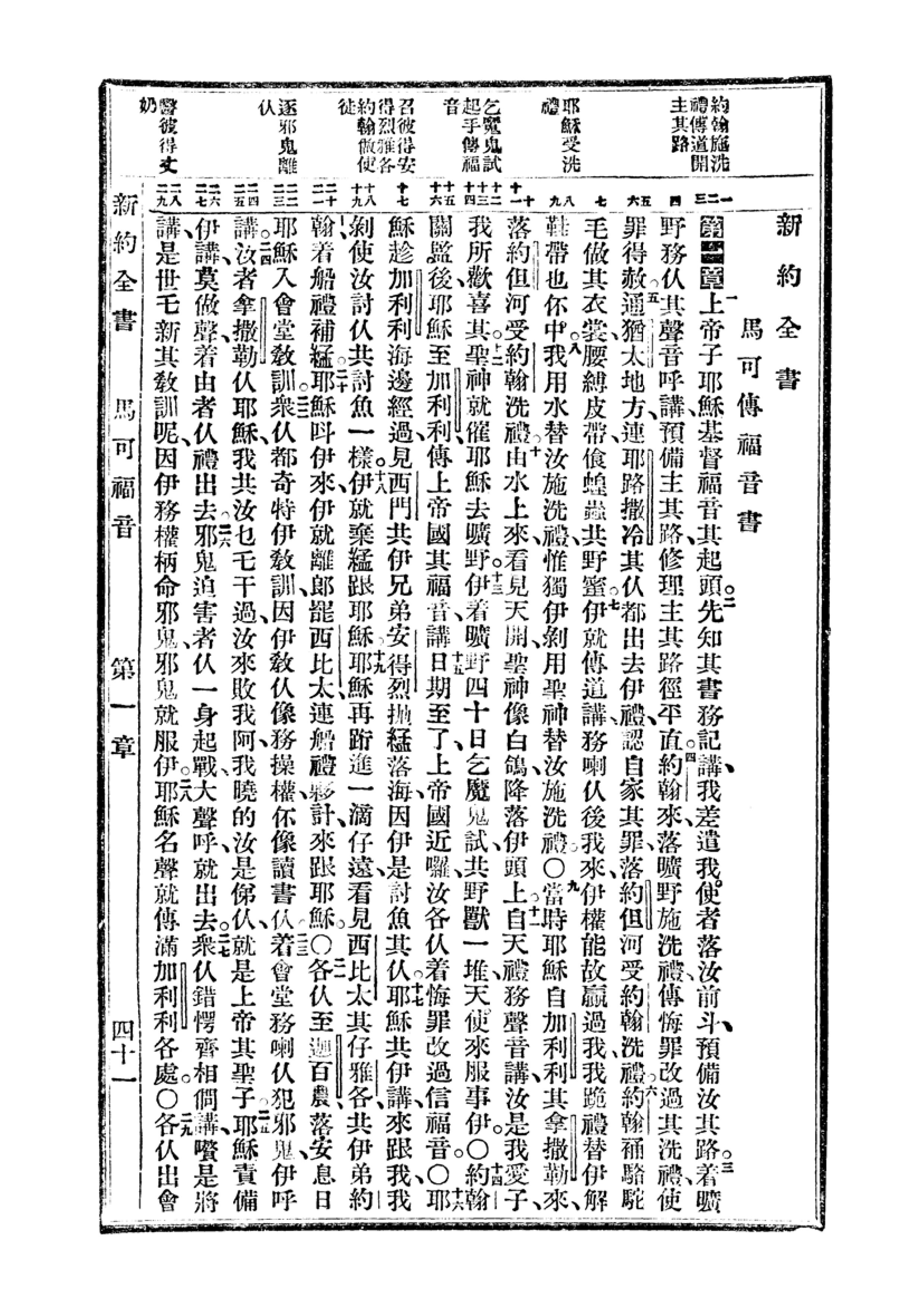 1940年福州土白《新舊約全書》 馬可福音 1 章 1 節到 1 章 29 節