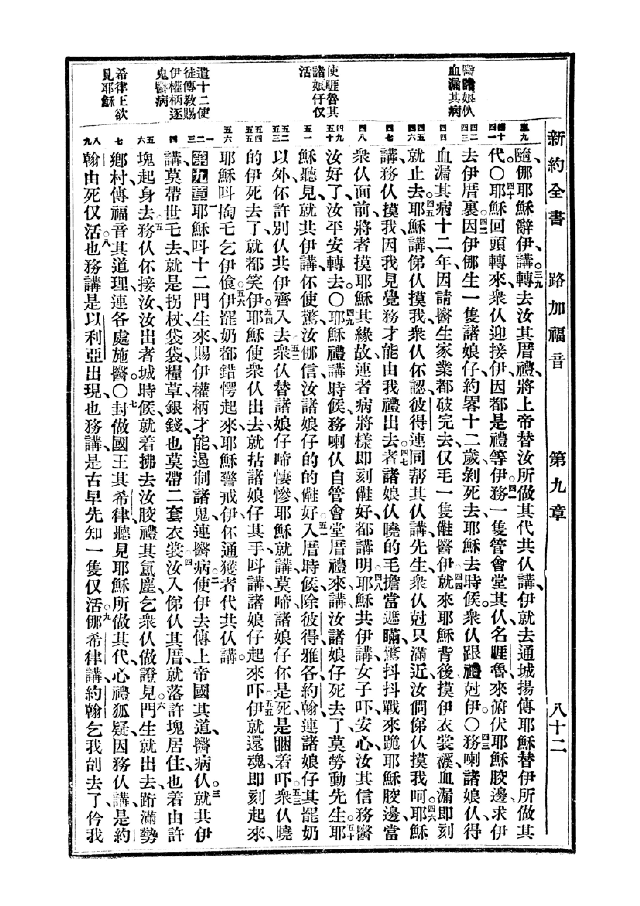 1940年福州土白《新舊約全書》 路加福音 8 章 39 節到 9 章 9 節