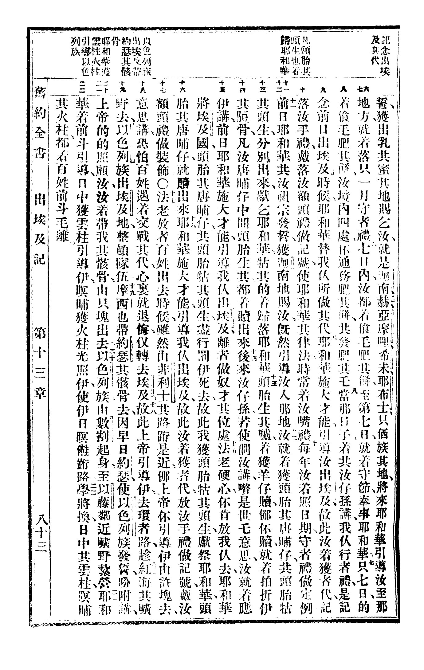 1940年福州土白《新舊約全書》 出埃及記 13 章 6 節到 13 章 22 節