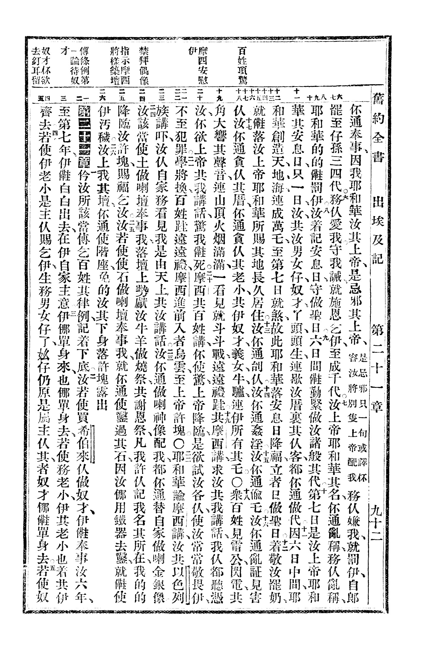 1940年福州土白《新舊約全書》 出埃及記 20 章 6 節到 21 章 5 節