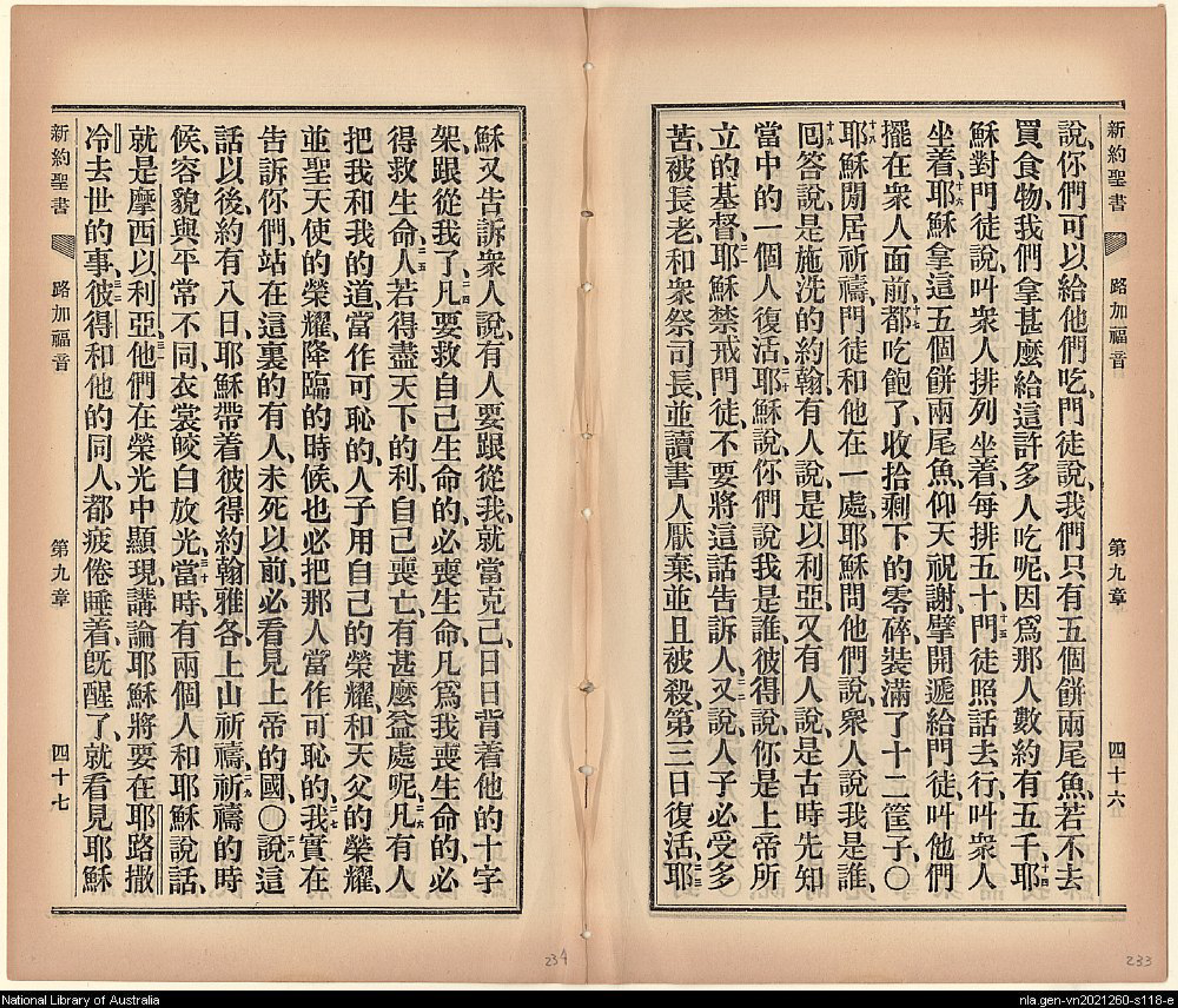 1903年新約全書 路加福音 9 章 13 節到 9 章 32 節