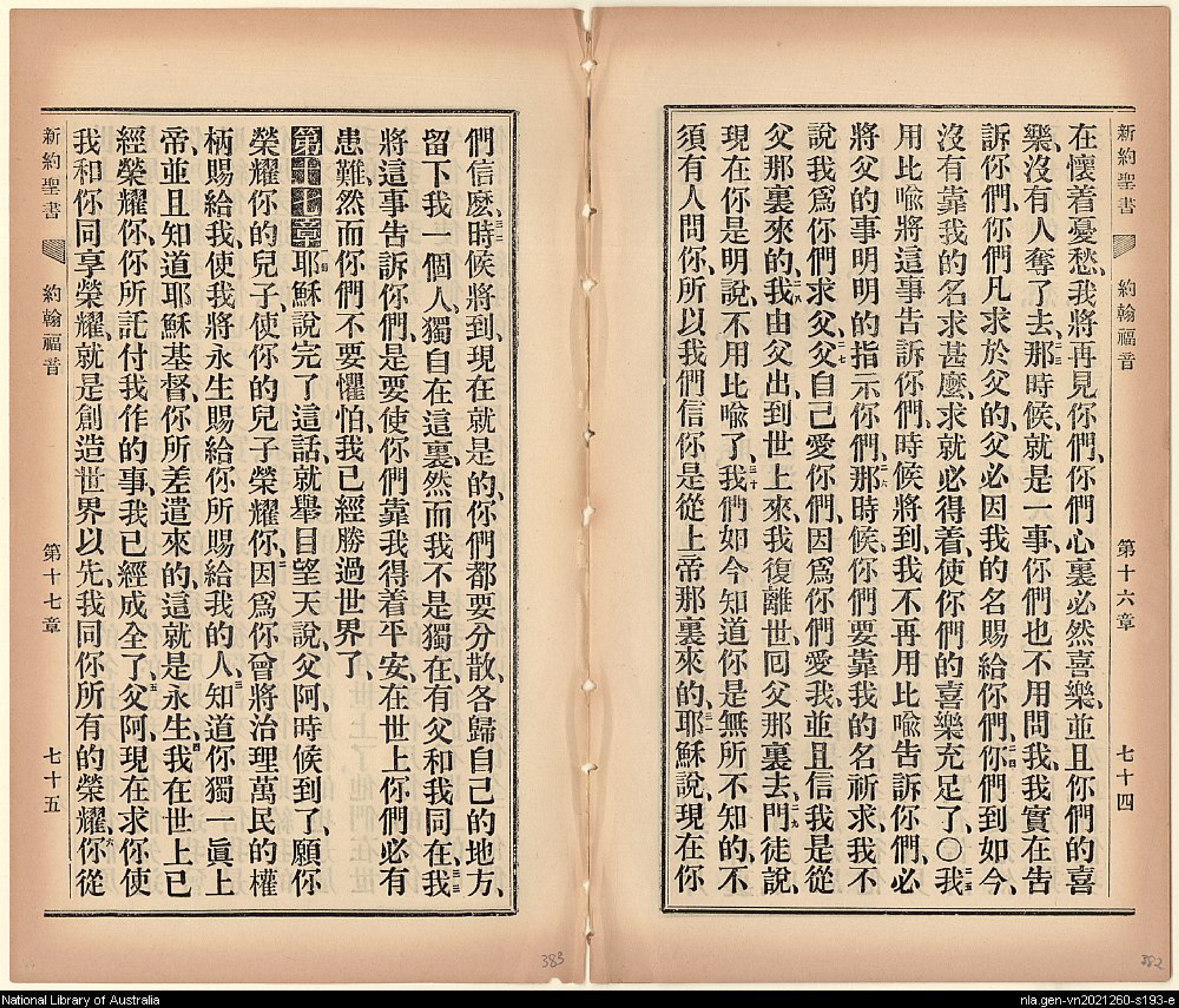 1903年新約全書 約翰福音 16 章 22 節到 17 章 5 節