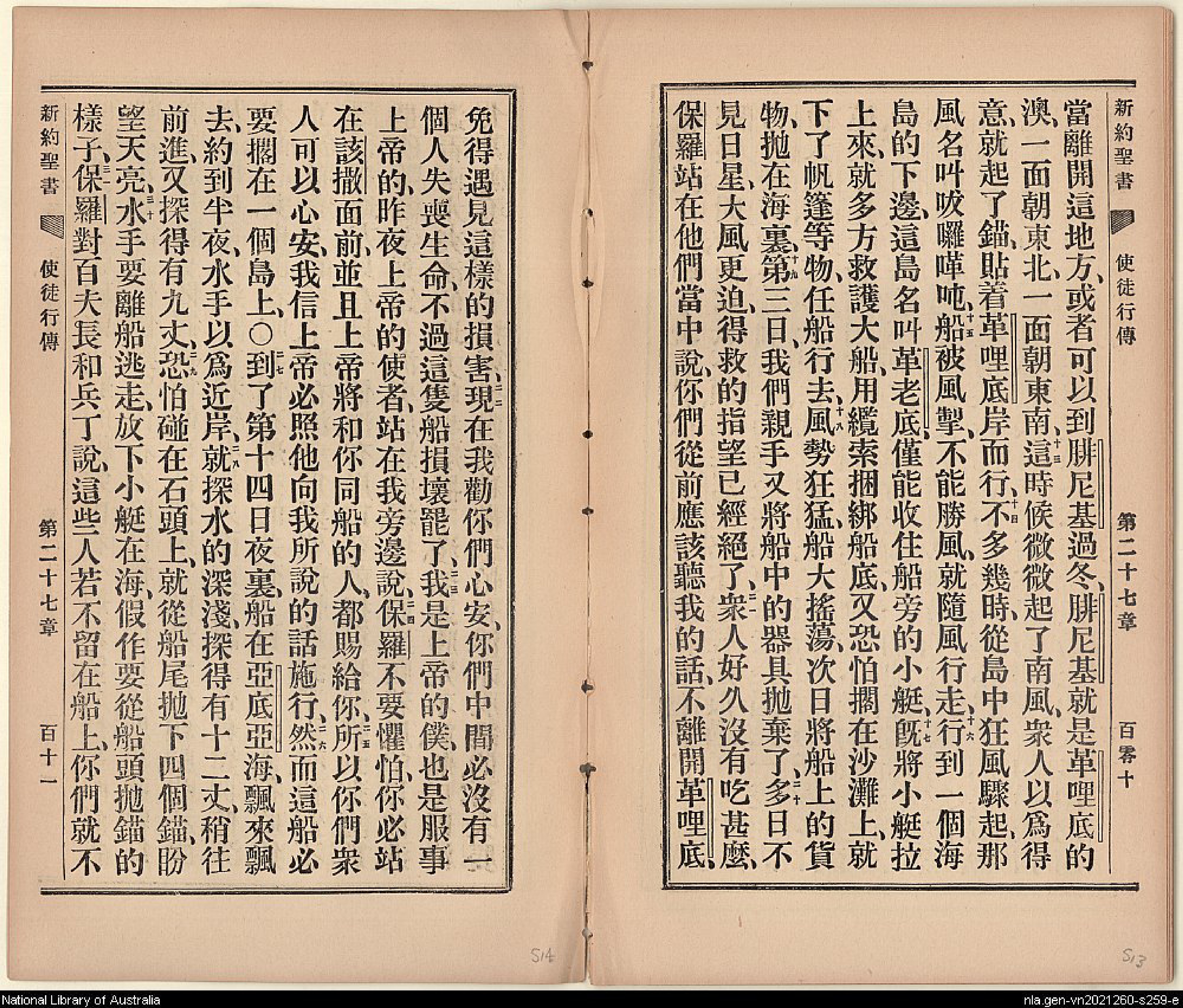 1903年新約全書 使徒行傳 27 章 13 節到 27 章 31 節