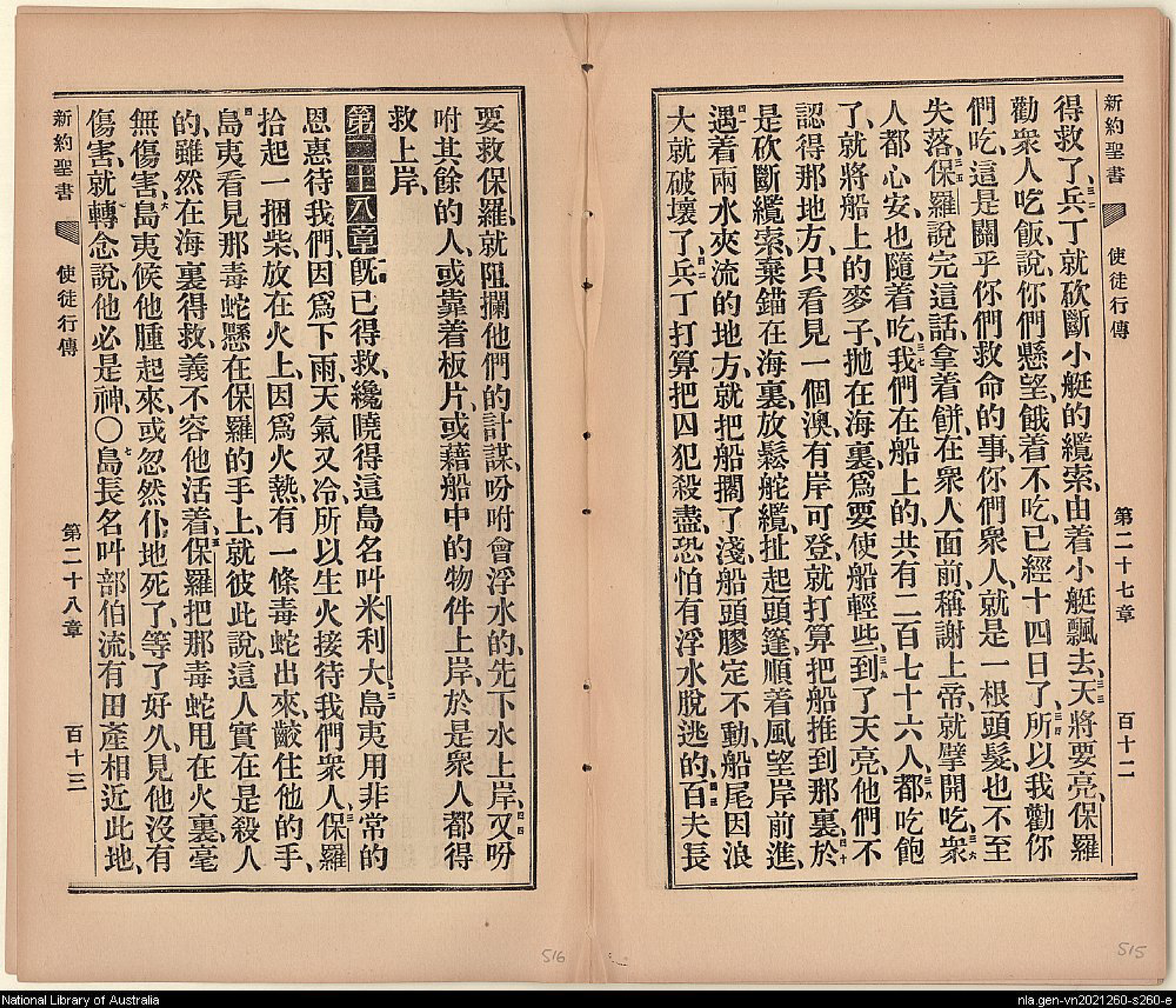 1903年新約全書 使徒行傳 27 章 32 節到 28 章 7 節