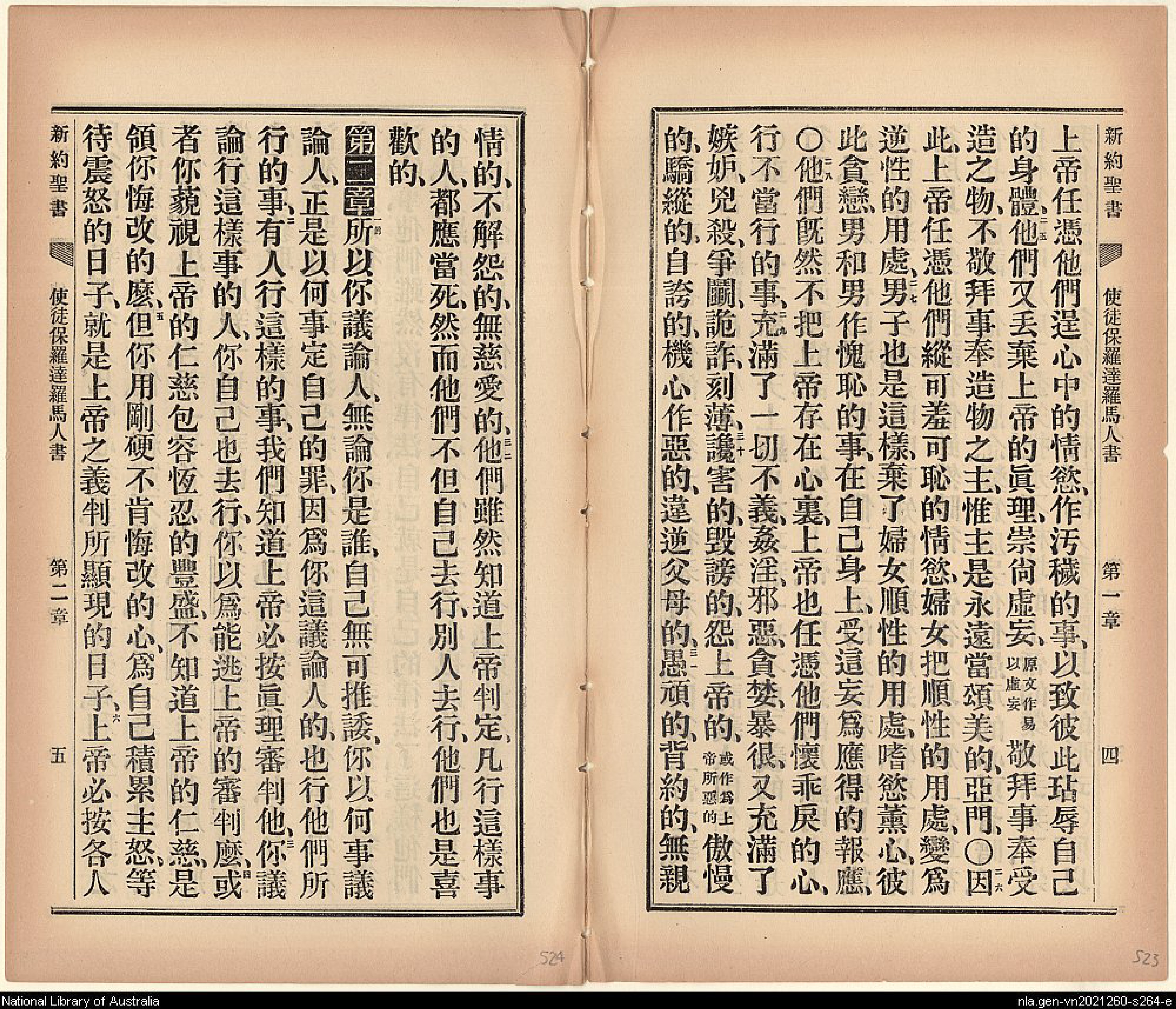 1903年新約全書 羅馬書 1 章 24 節到 2 章 6 節