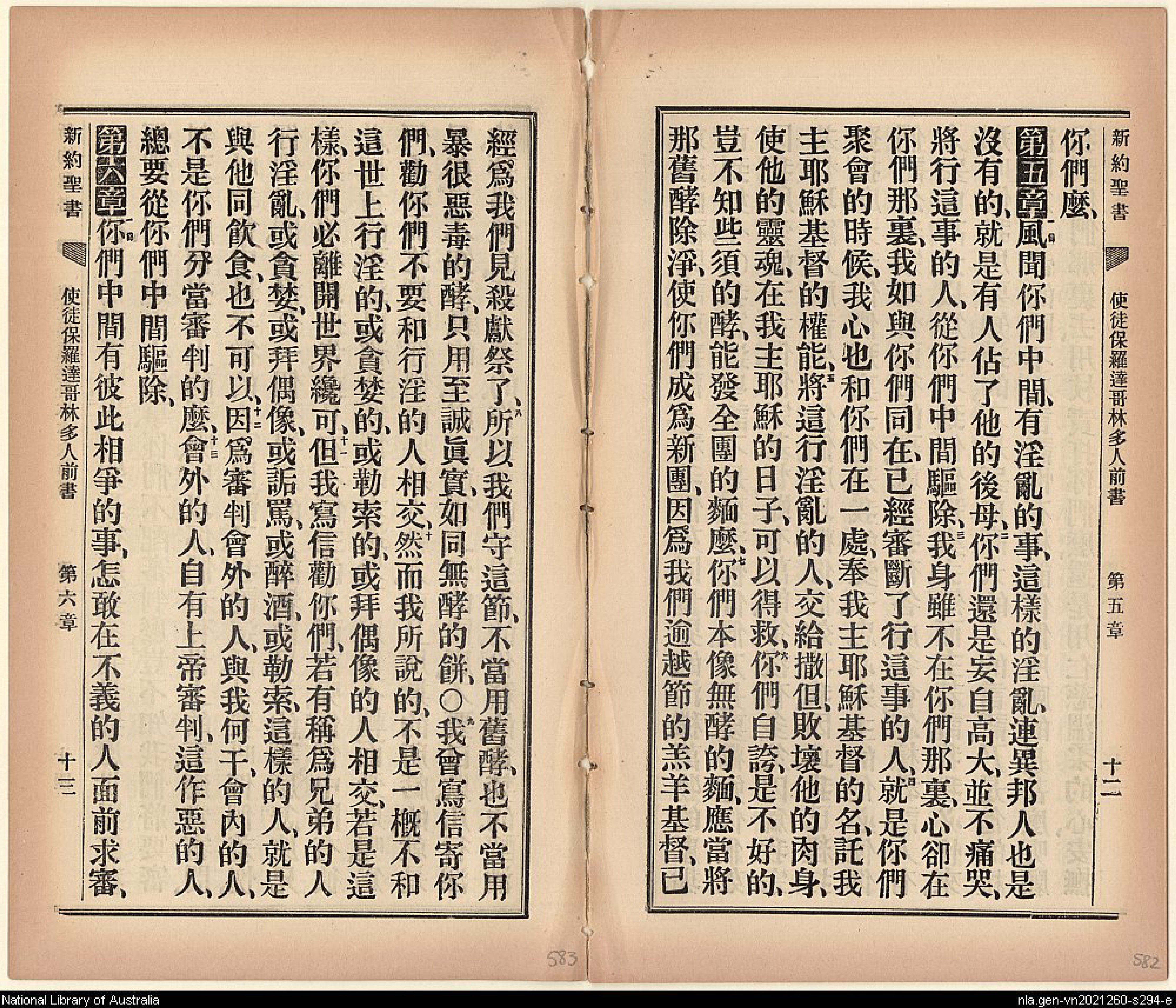 1903年新約全書 哥林多前書 5 章 1 節到 6 章 1 節