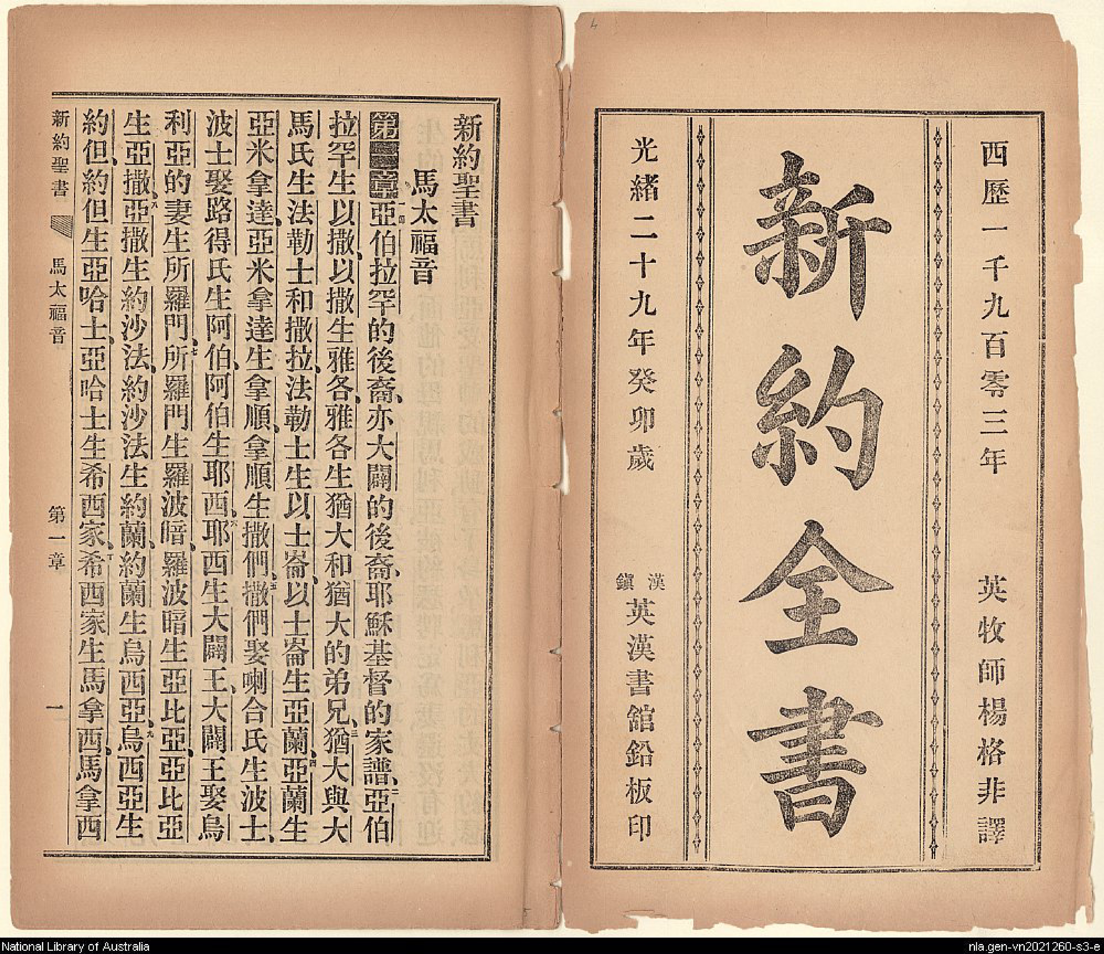 1903年新約全書 馬太福音 1 章 1 節到 1 章 10 節