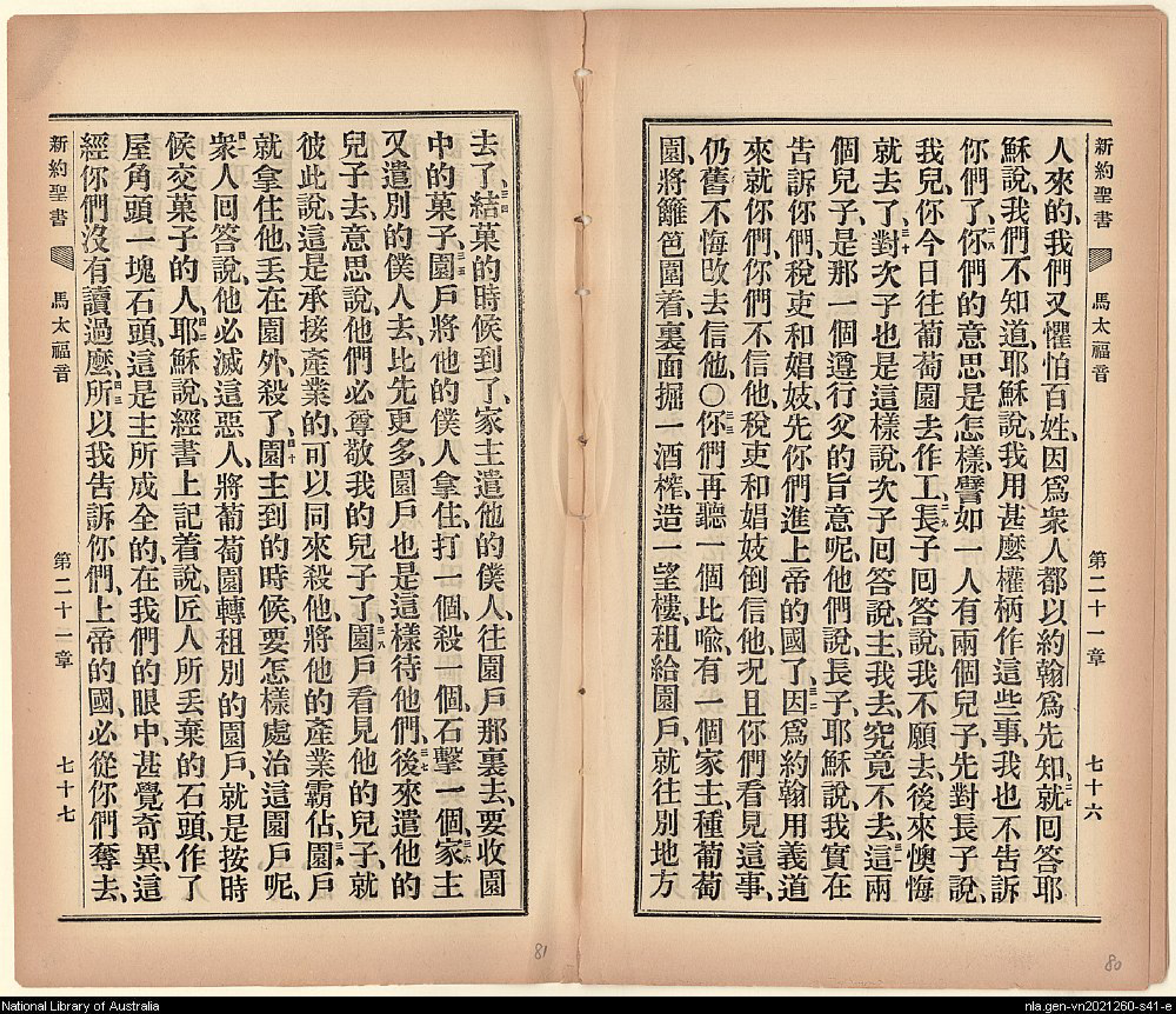 1903年新約全書 馬太福音 21 章 26 節到 21 章 43 節