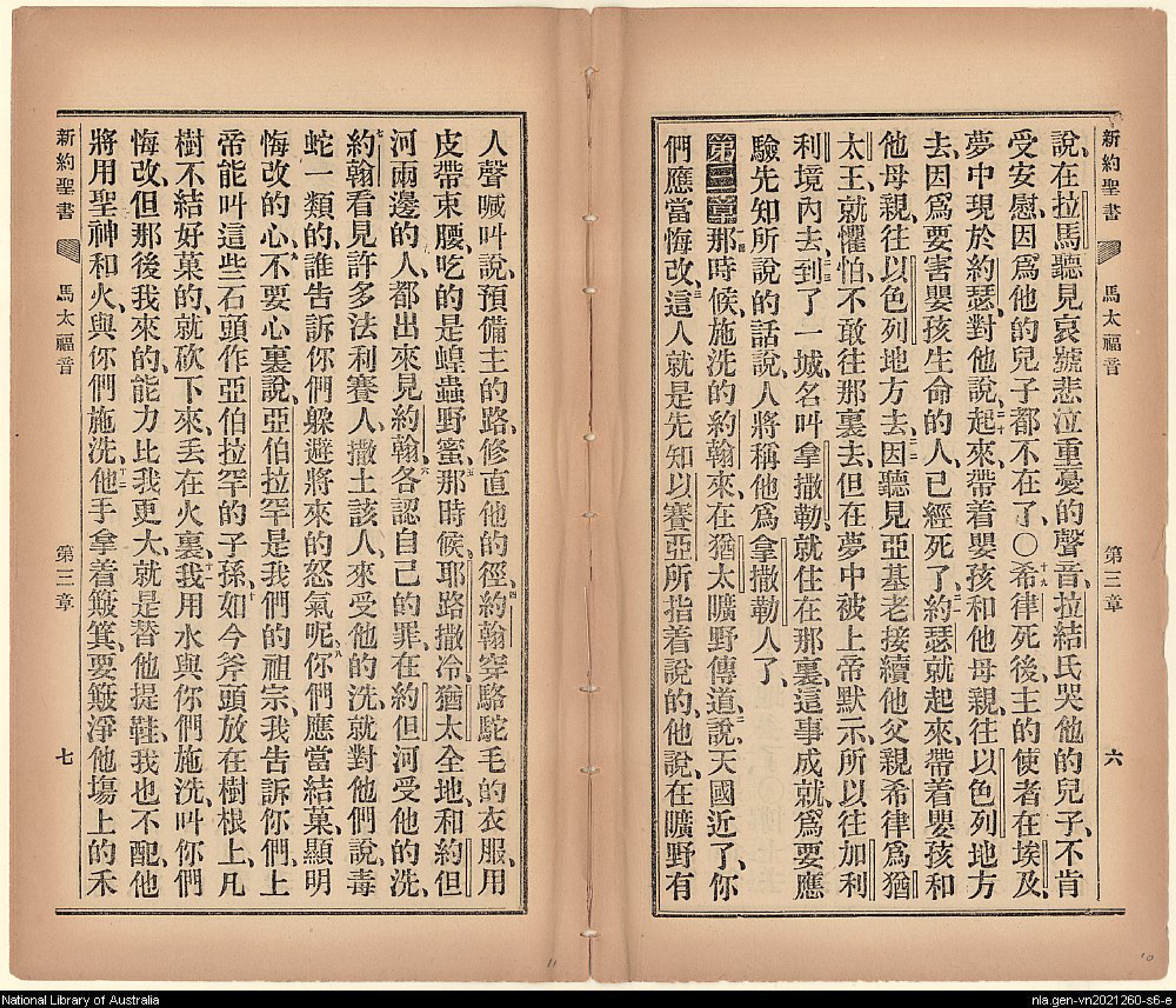 1903年新約全書 馬太福音 2 章 18 節到 3 章 12 節