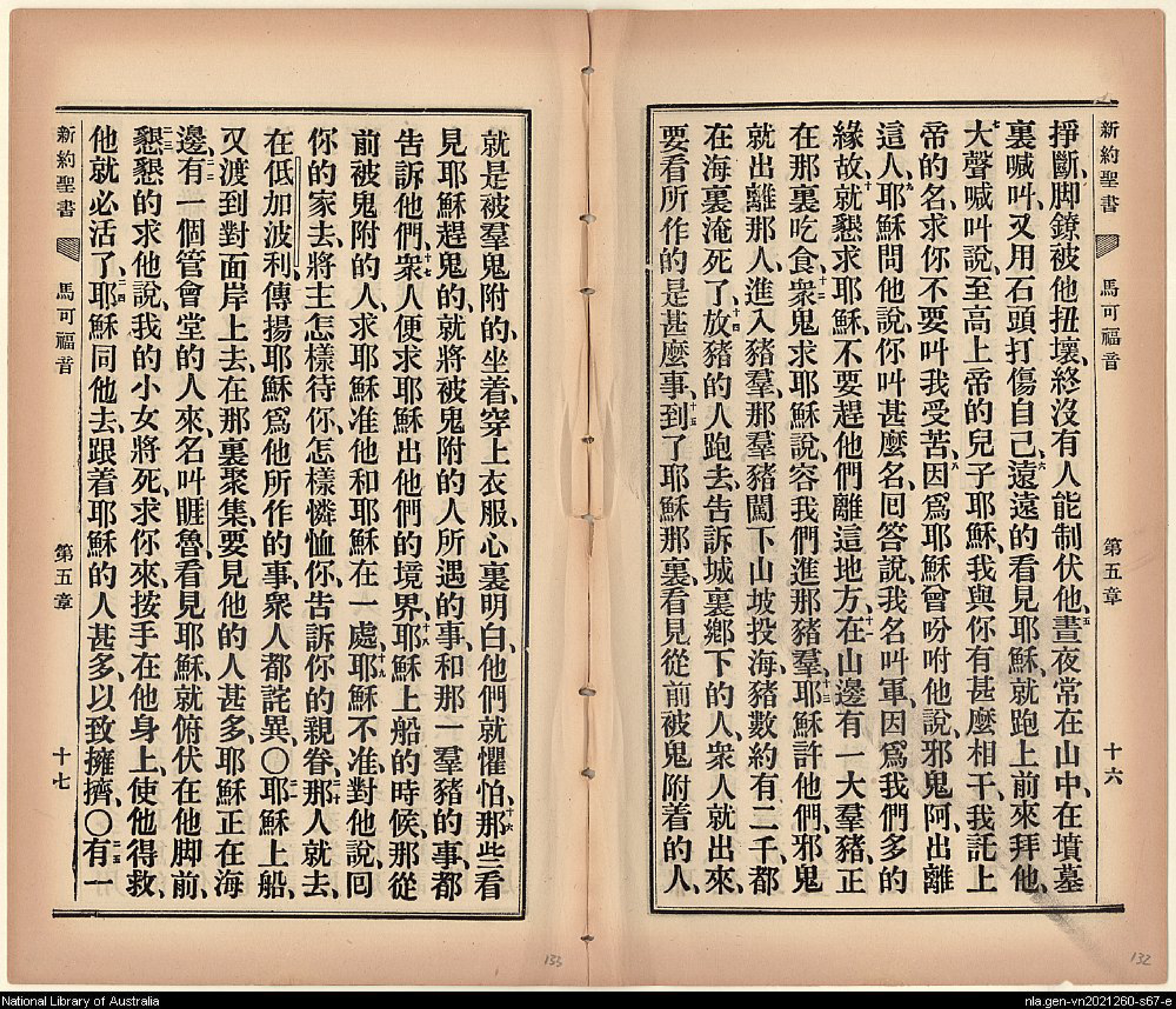 1903年新約全書 馬可福音 5 章 5 節到 5 章 24 節