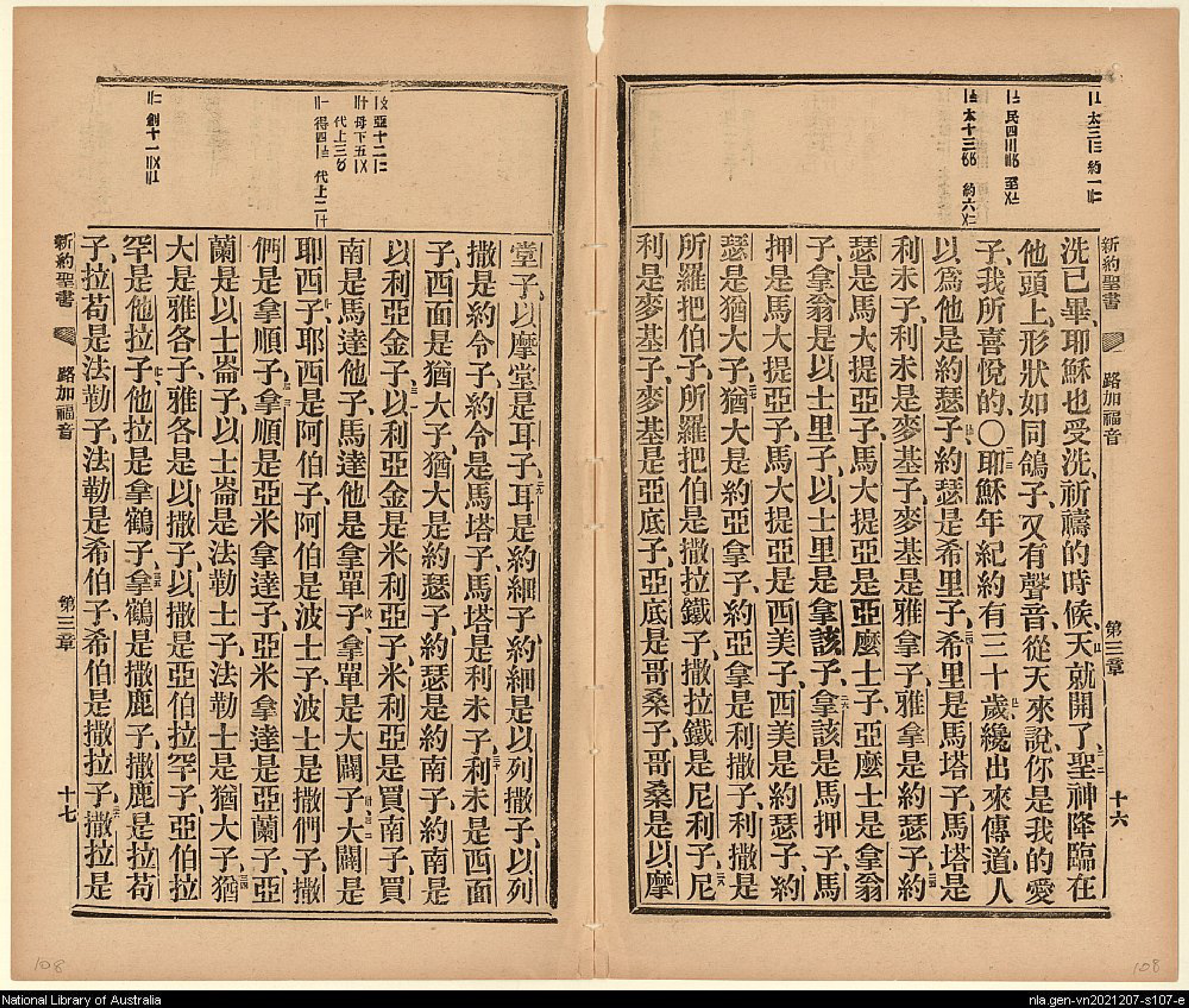 1906年新約全書 路加福音 3 章 21 節到 3 章 35 節