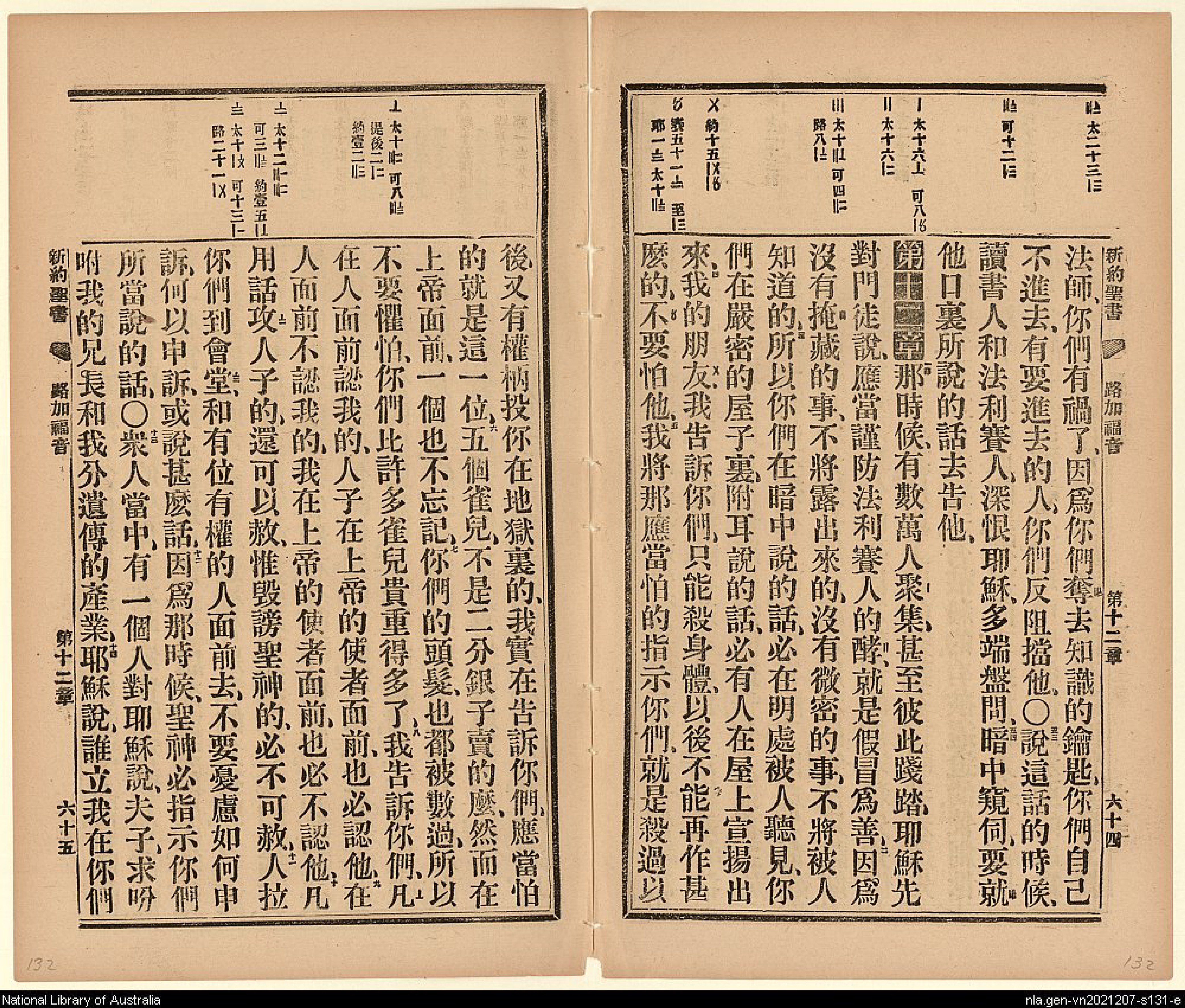 1906年新約全書 路加福音 11 章 52 節到 12 章 14 節