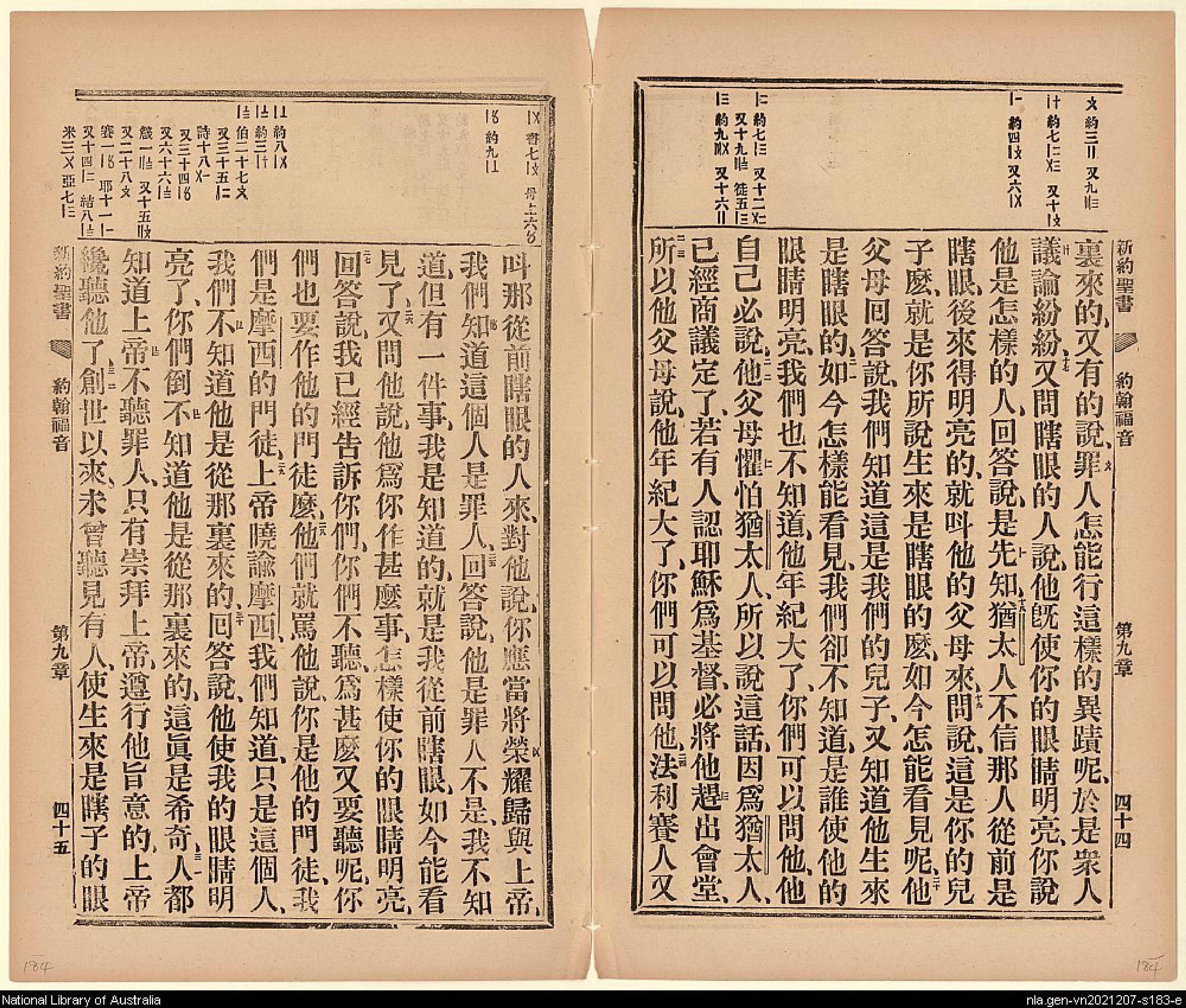 1906年新約全書 約翰福音 9 章 17 節到 9 章 32 節