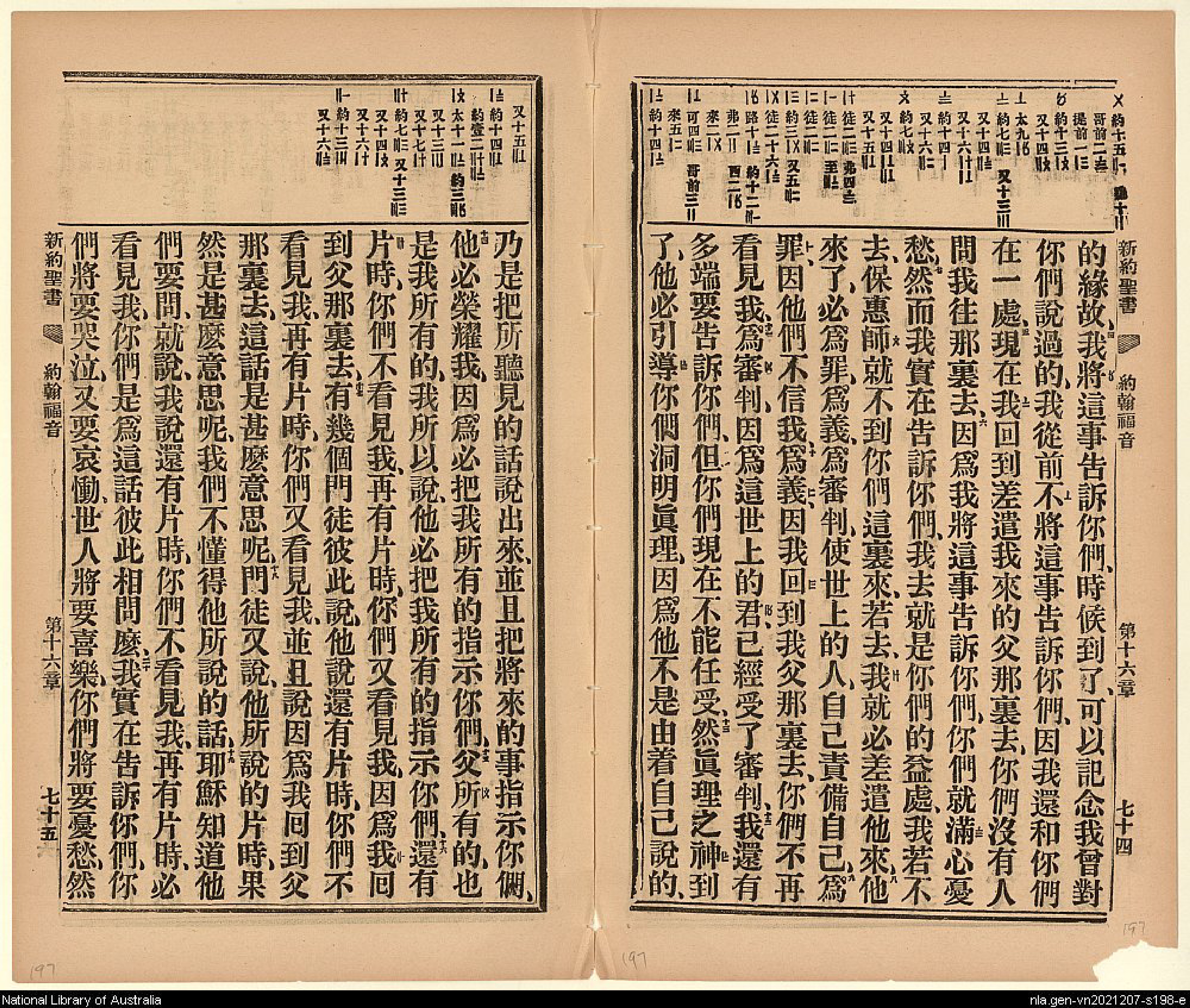 1906年新約全書 約翰福音 16 章 4 節到 16 章 20 節